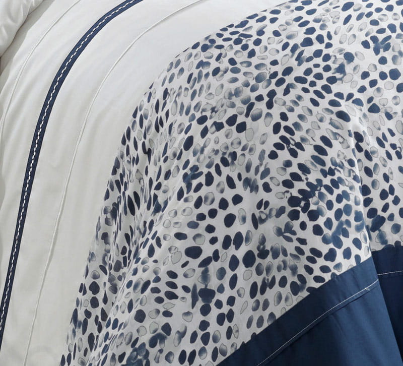 Komplet składa się z poszwy na kołdrę 160x200 cm oraz dwóch poszewek na poduszki 70x80 cm. Wszystkie elementy są zapinane na zamek błyskawiczny.