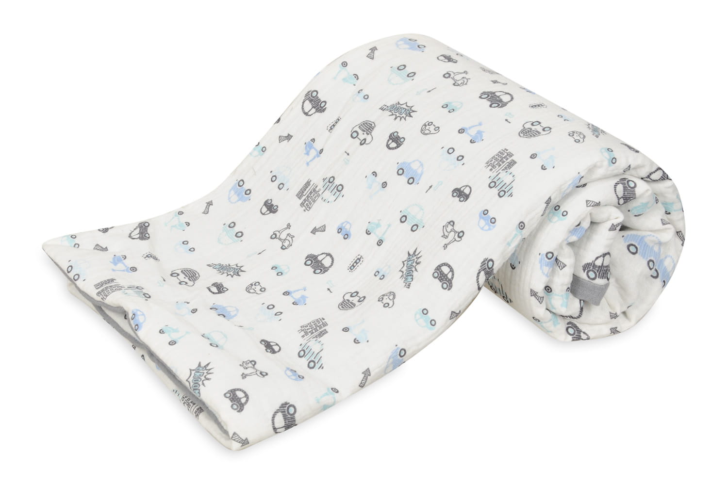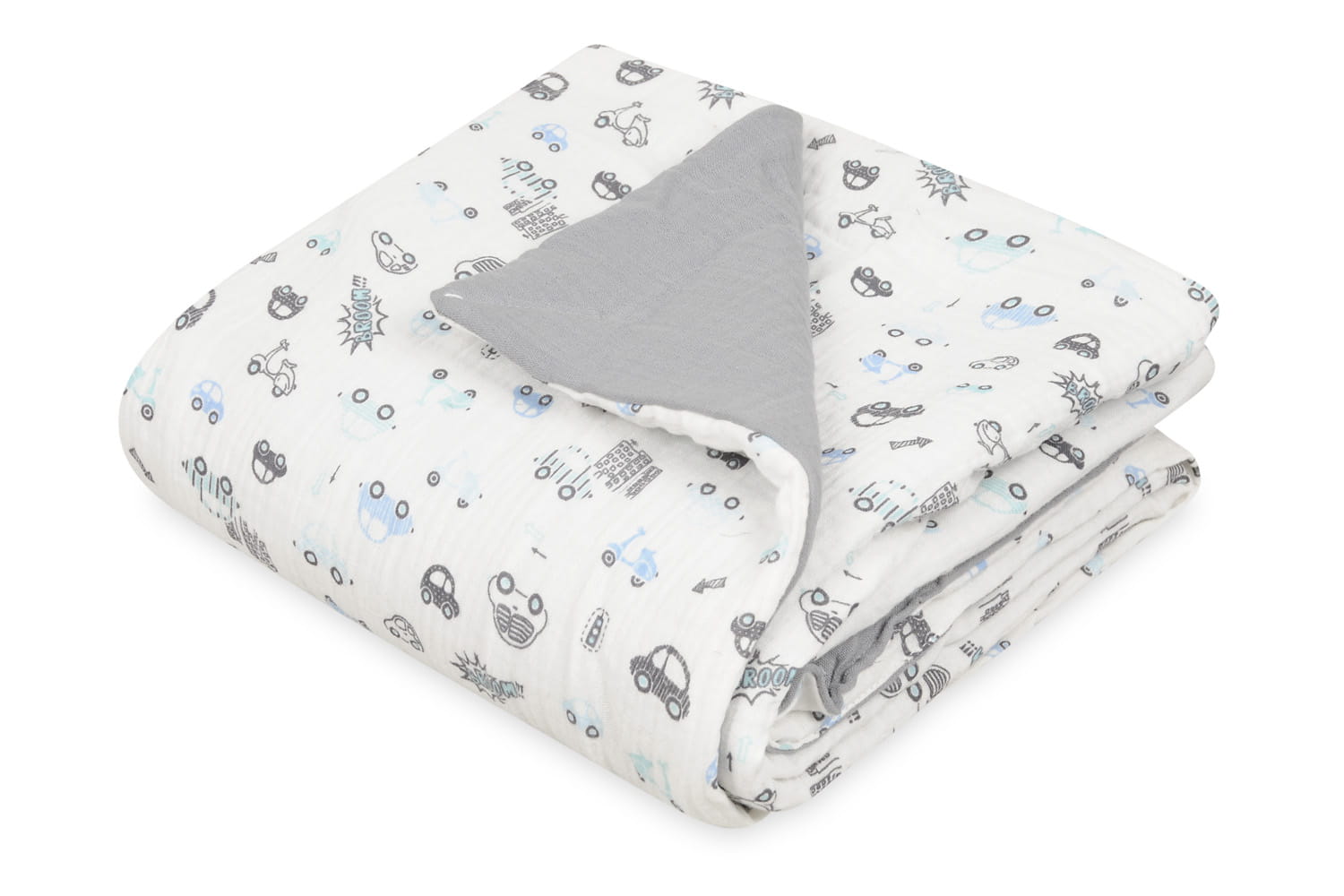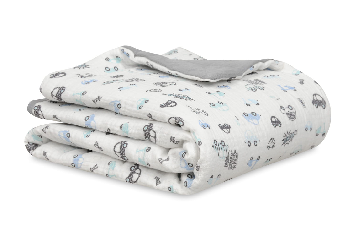 Kocyk 75x100 Muślin Design jasnoszary + biały w autka w pudełku BabyMatex