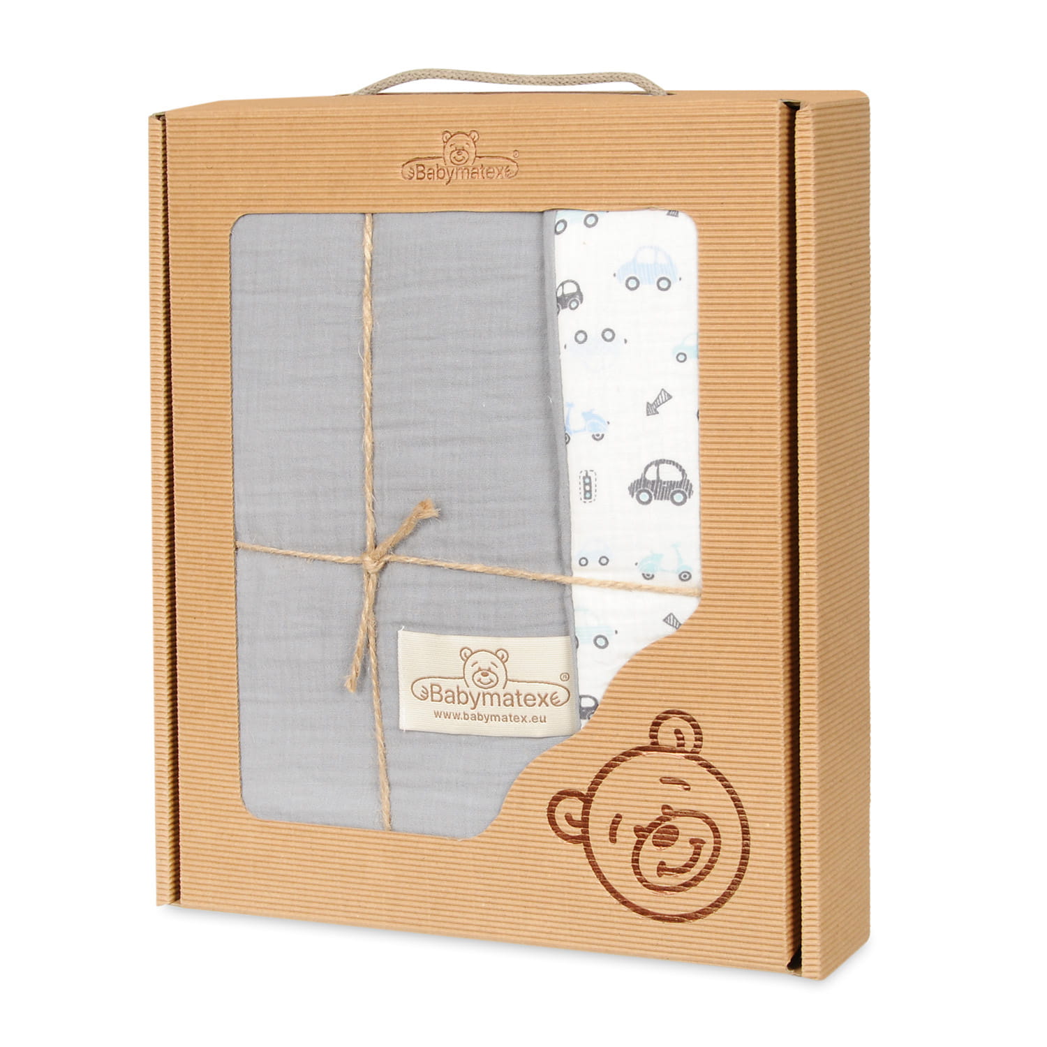 BABYMATEX KOCYK 75X100 MUŚLIN DESIGN JASNOSZARY + BIAŁY W AUTKA W PUDEŁKU