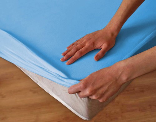 Nieprzemakalne prześcieradło jersey z gumką SG to produkt 2 w 1, spełnia rolę zarówno prześcieradła jak i ochraniacza na materac. Prześcieradło zostało wykonane z dwóch rodzajów materiałów: tkaniny jerseyowej z ochronną warstwą poliuretanową (PU) i cienkiej dzianiny jerseyowej, doszywanej z boku ochraniacza. Prześcieradło ochronne jest nieprzemakalne – stanowi barierę ochronną dla wszelkiego rodzaju cieszy, kurzu i roztoczy.