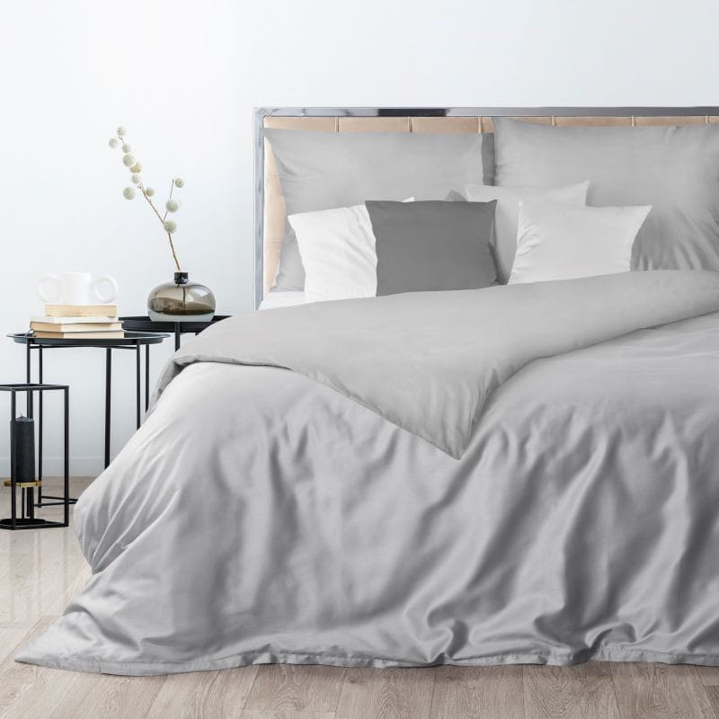 Komplet jednobarwnej pościeli srebrnej w rozmiarze 160x200 cm, wykonanej z miękkiej satyny bawełnianej.