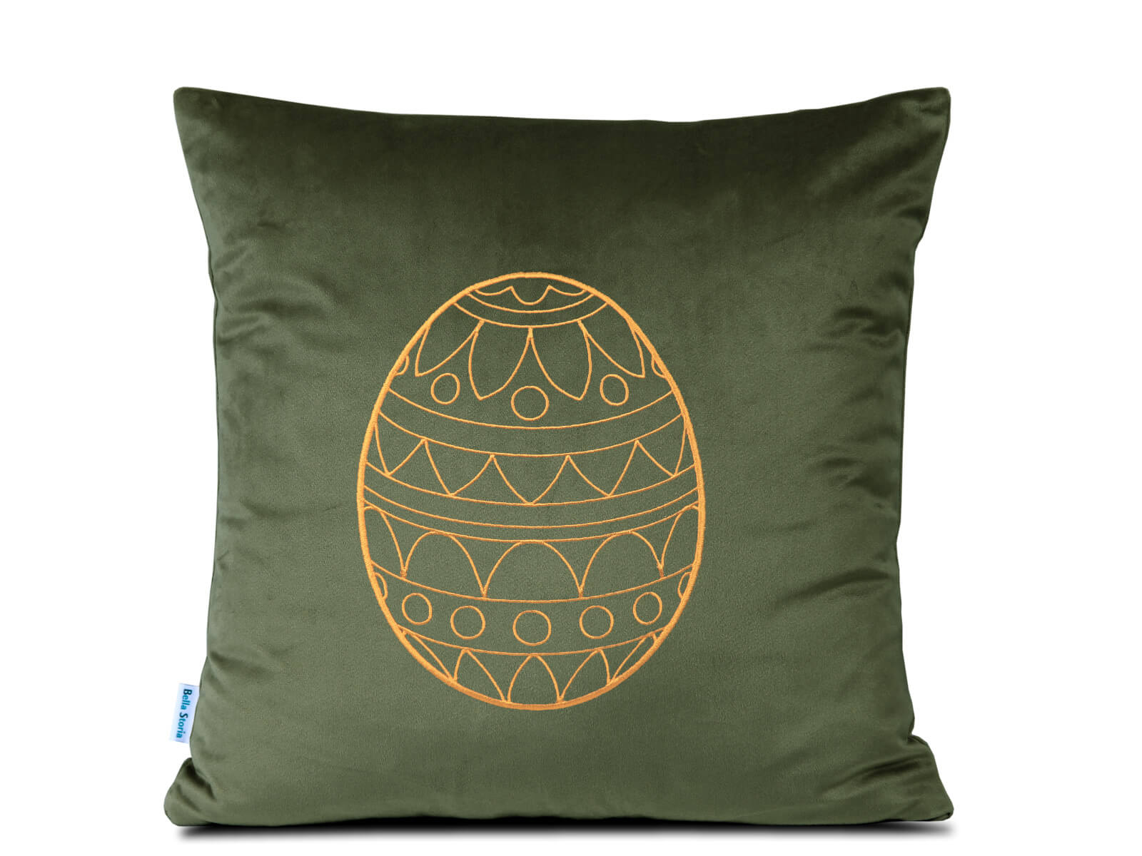 Poduszka 40x40 haftowana Złote jajko wielkanocne - oliwkowa
