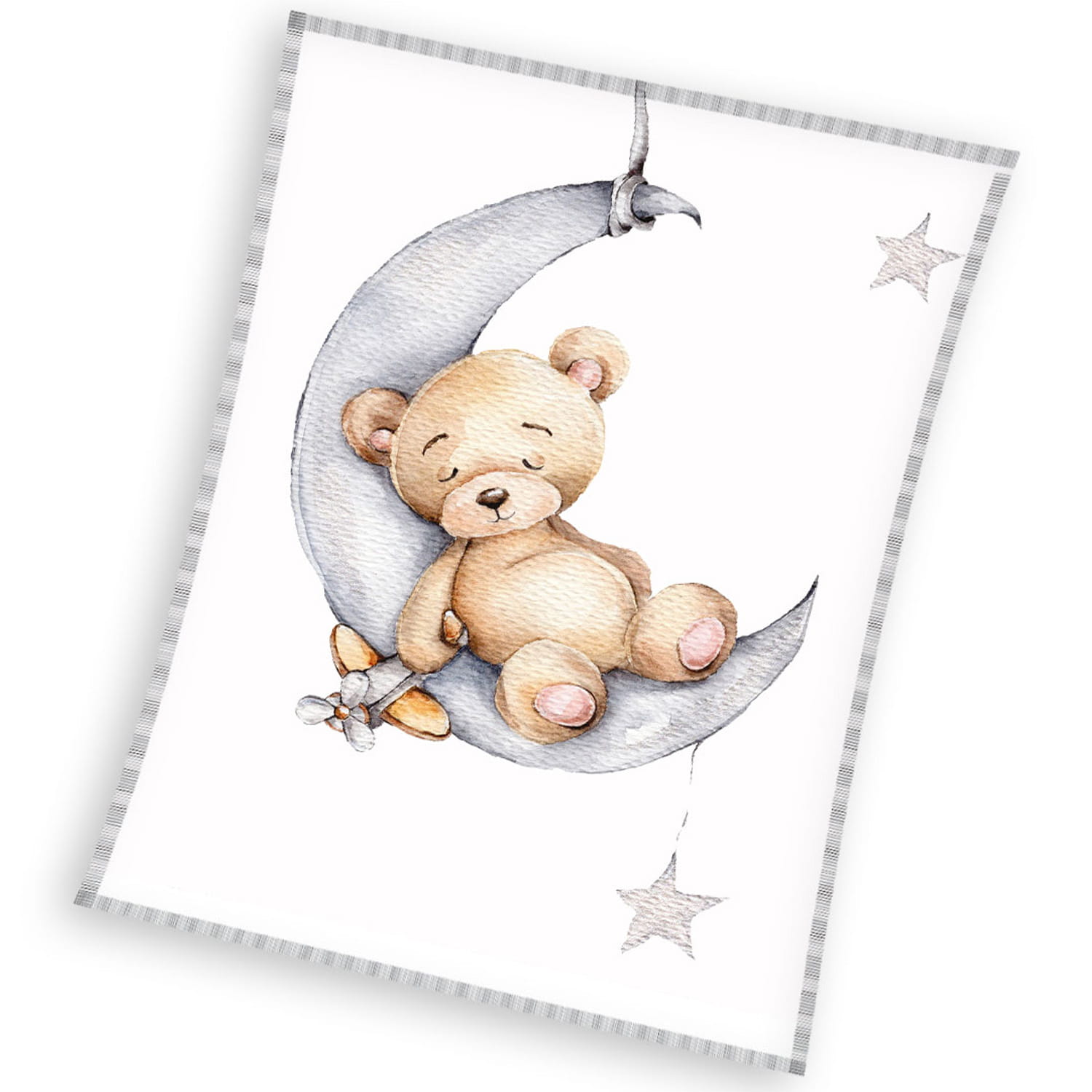 Design: Czarujący wzór z przyjaznym misiem, który wyruszył w podróż na księżyc, inspiruje do marzeń i stwarza atmosferę pełną czułości.