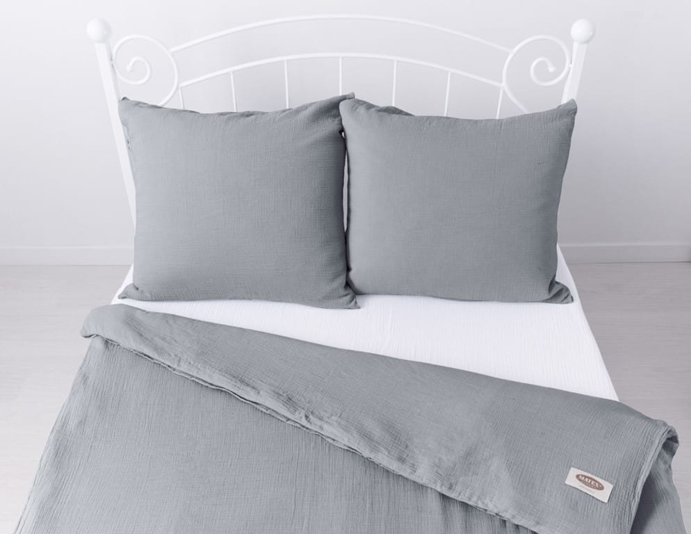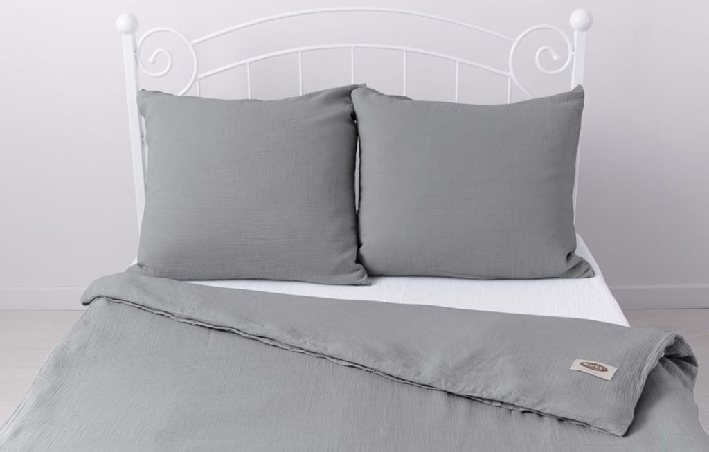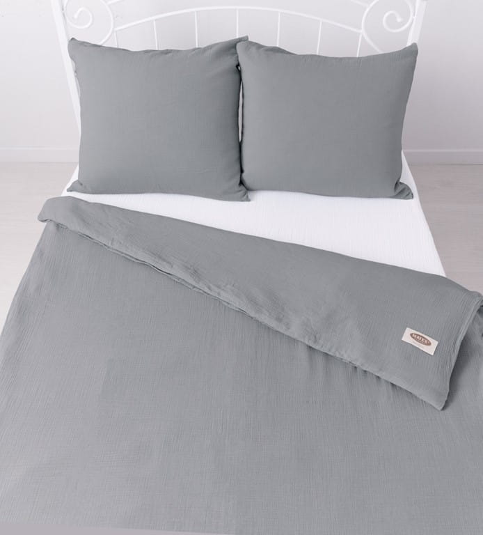 Delikatna i wyjątkowo miękka jednobarwna pościel muślinowa w rozmiarze 140x200 cm z jedną poszewką 70x80 cm w kolorze szarym.