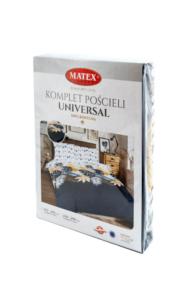 Komplet pościeli Universal 220x200 cm został stworzony z w 100% z tkaniny bawełnianej, charakteryzującej się klasycznym splotem o dużej wytrzymałości.