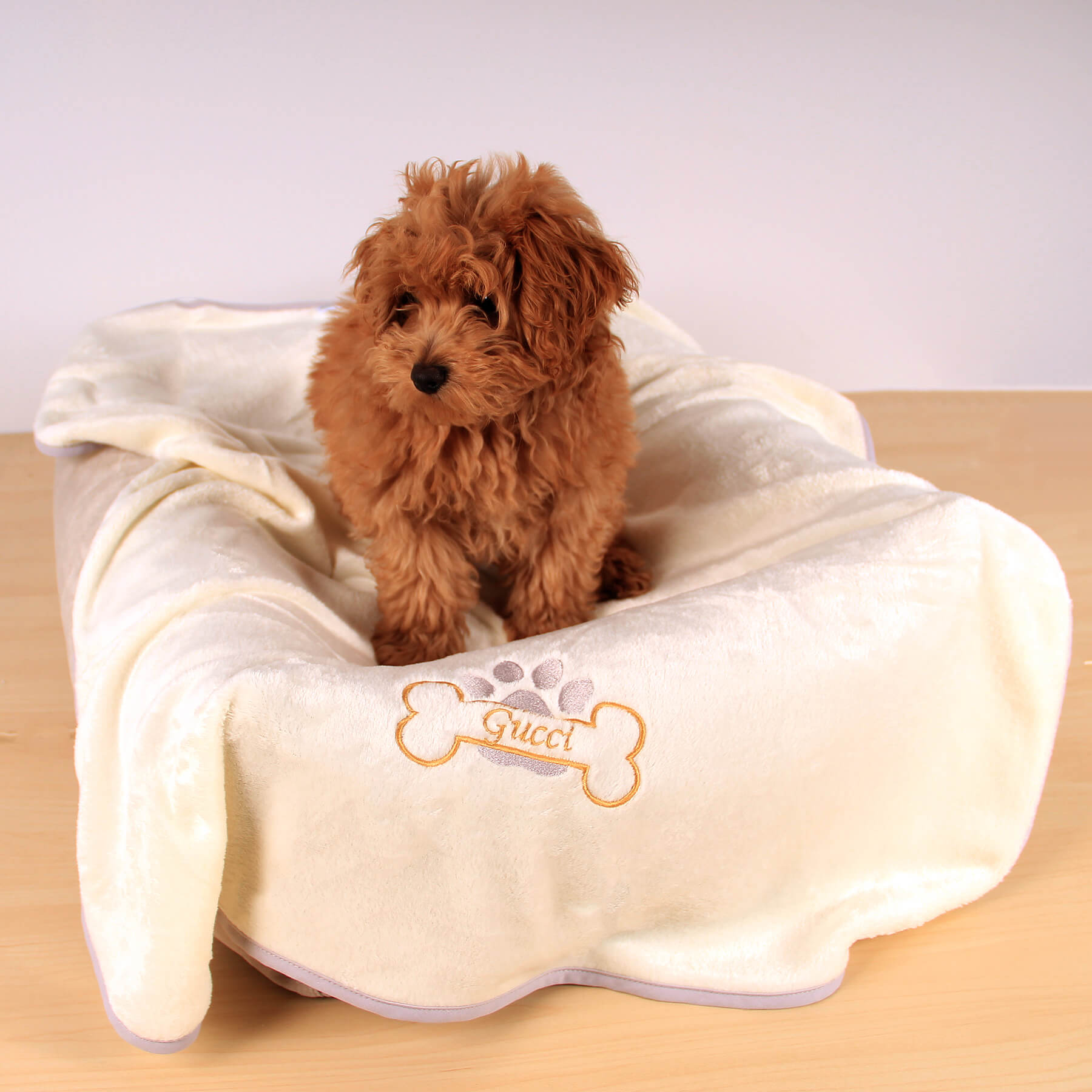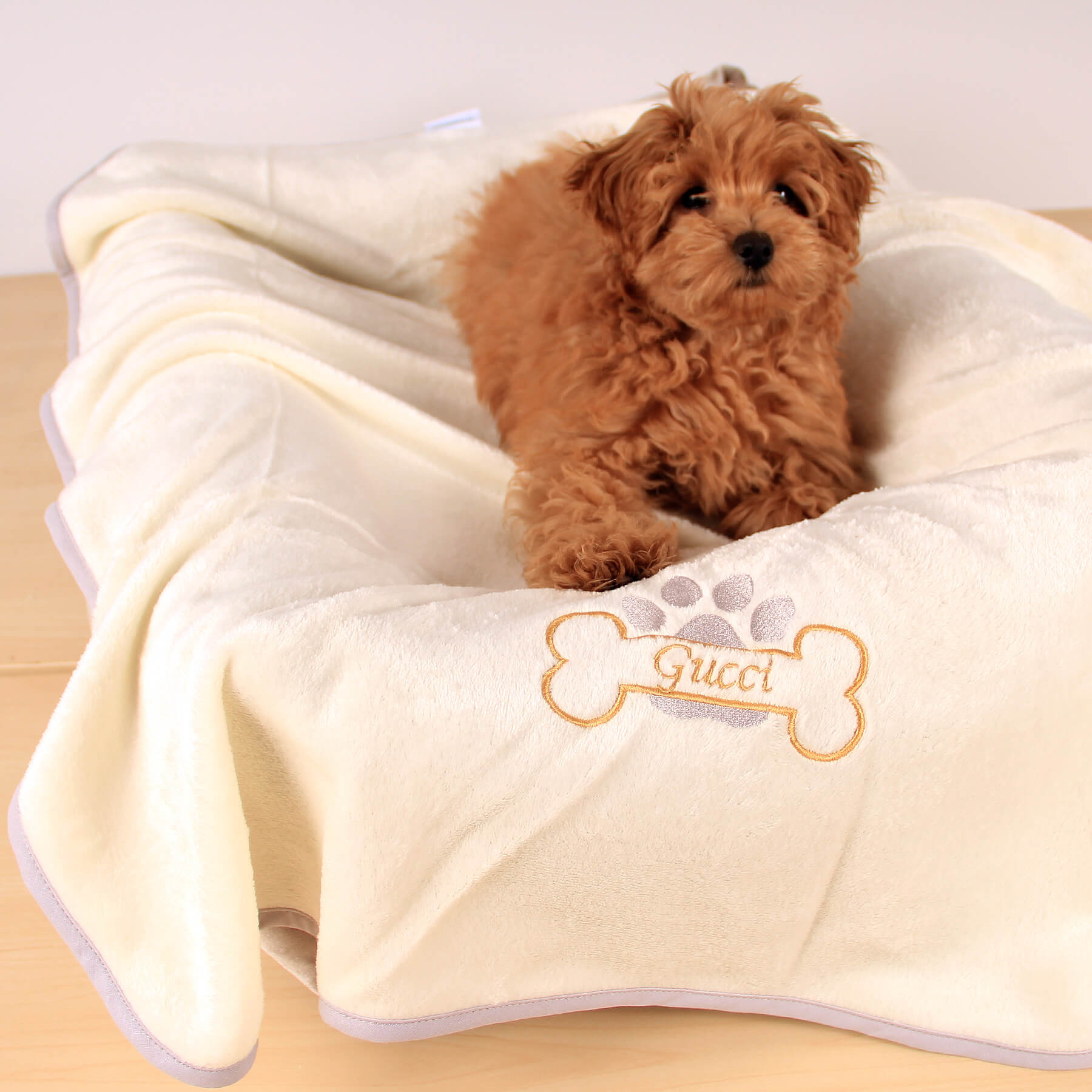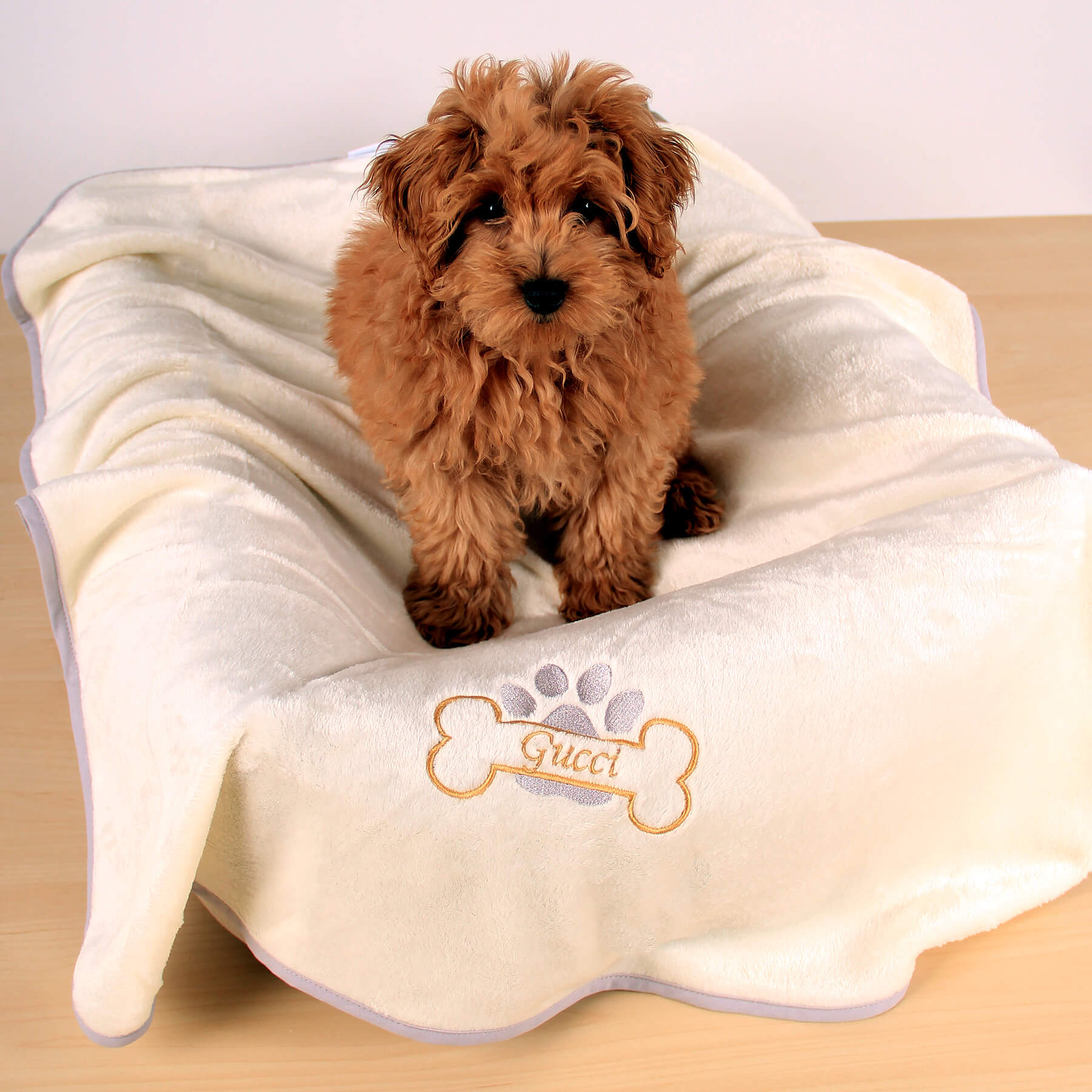 Koc z imieniem dla psa Amico kremowy 70x90 personalizowany haft
