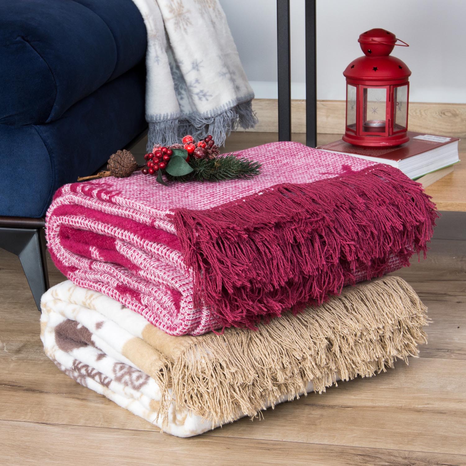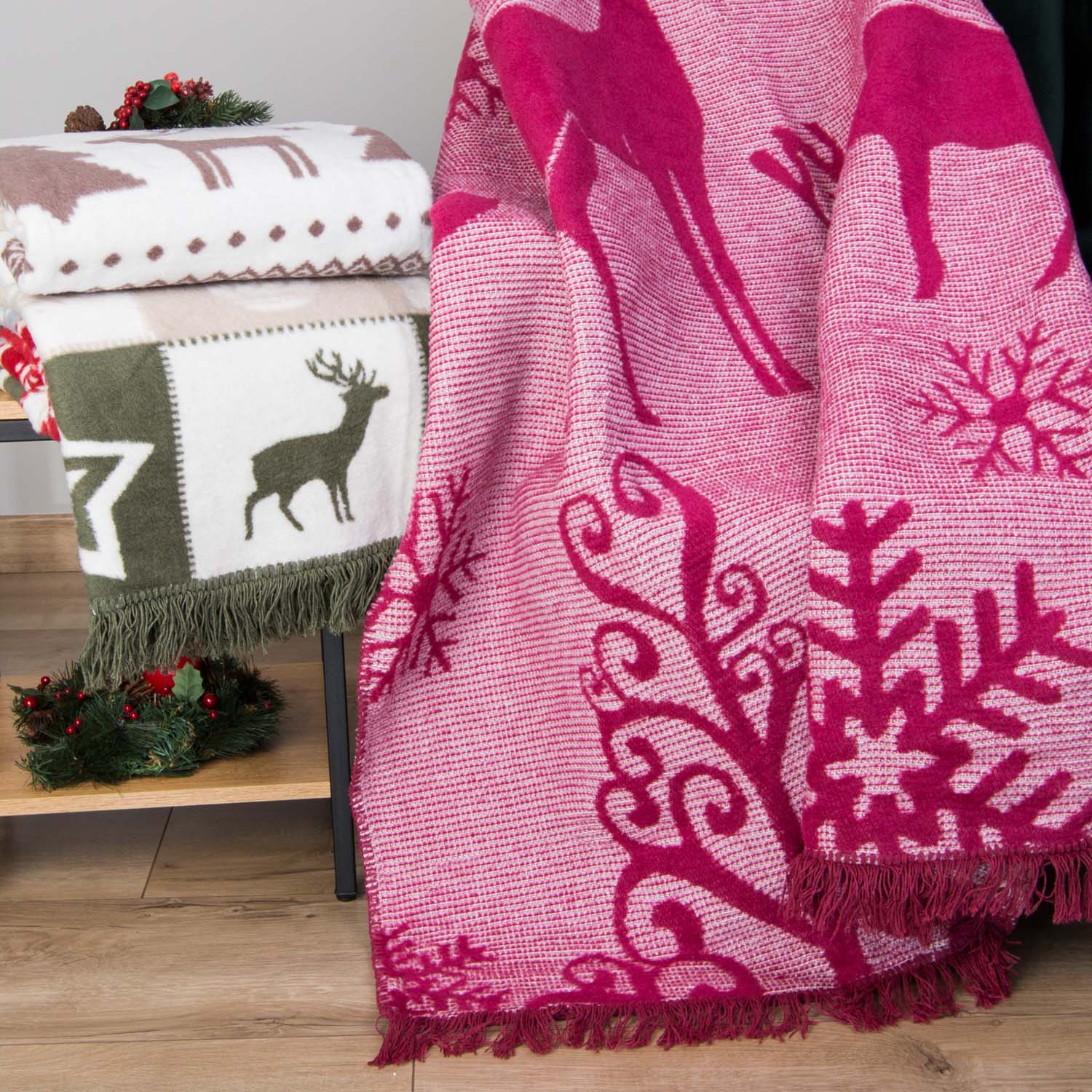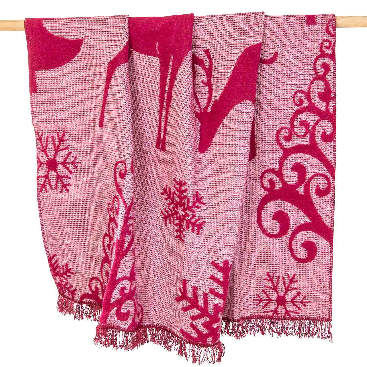 Koc 150x200 bawełniany malinowy w świąteczne wzory Nordic Rose Darymex