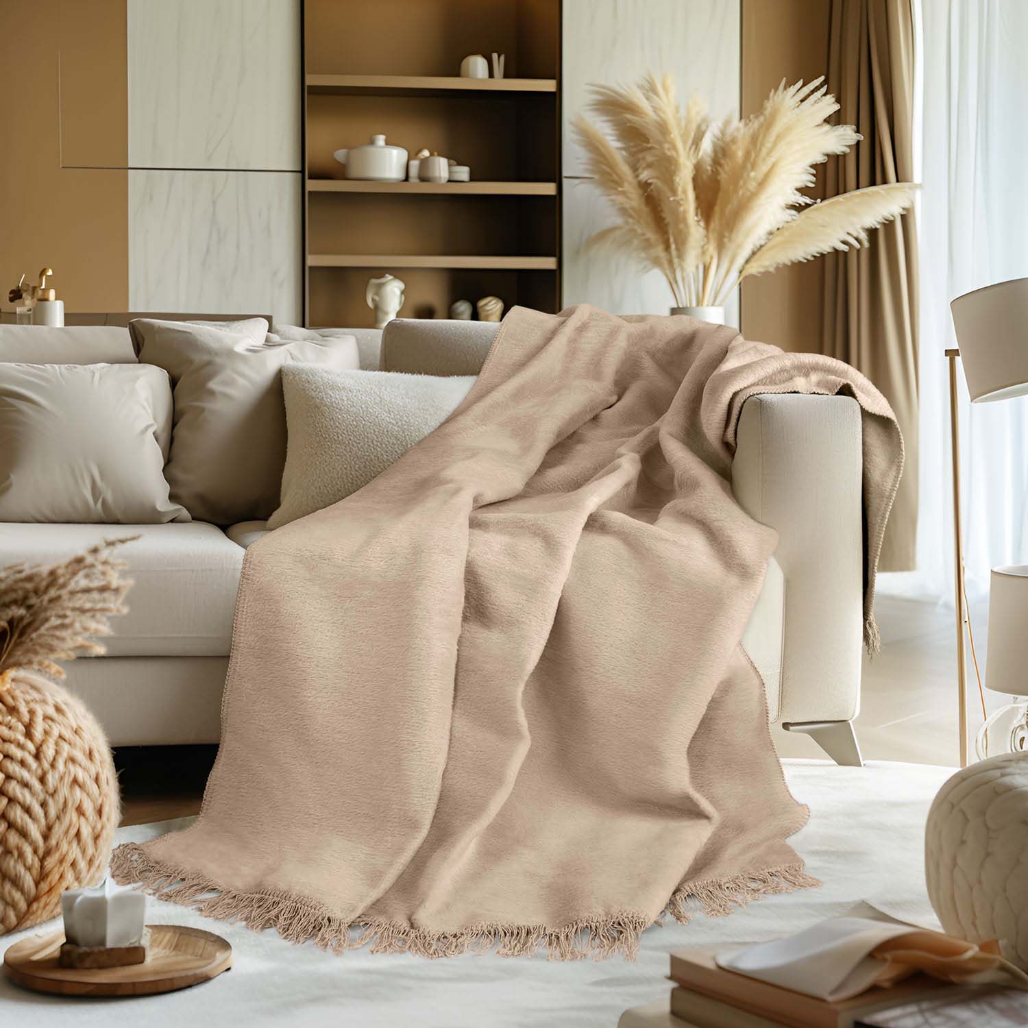 Otul swoje wnętrze miękkością i elegancją z kocem Essential Touch w odcieniu jasnobeżowym. Ten delikatny, ciepły kolor wprowadza do pomieszczenia harmonię i naturalny spokój, doskonale uzupełniając aranżacje w stylu boho, scandi oraz modern classic.