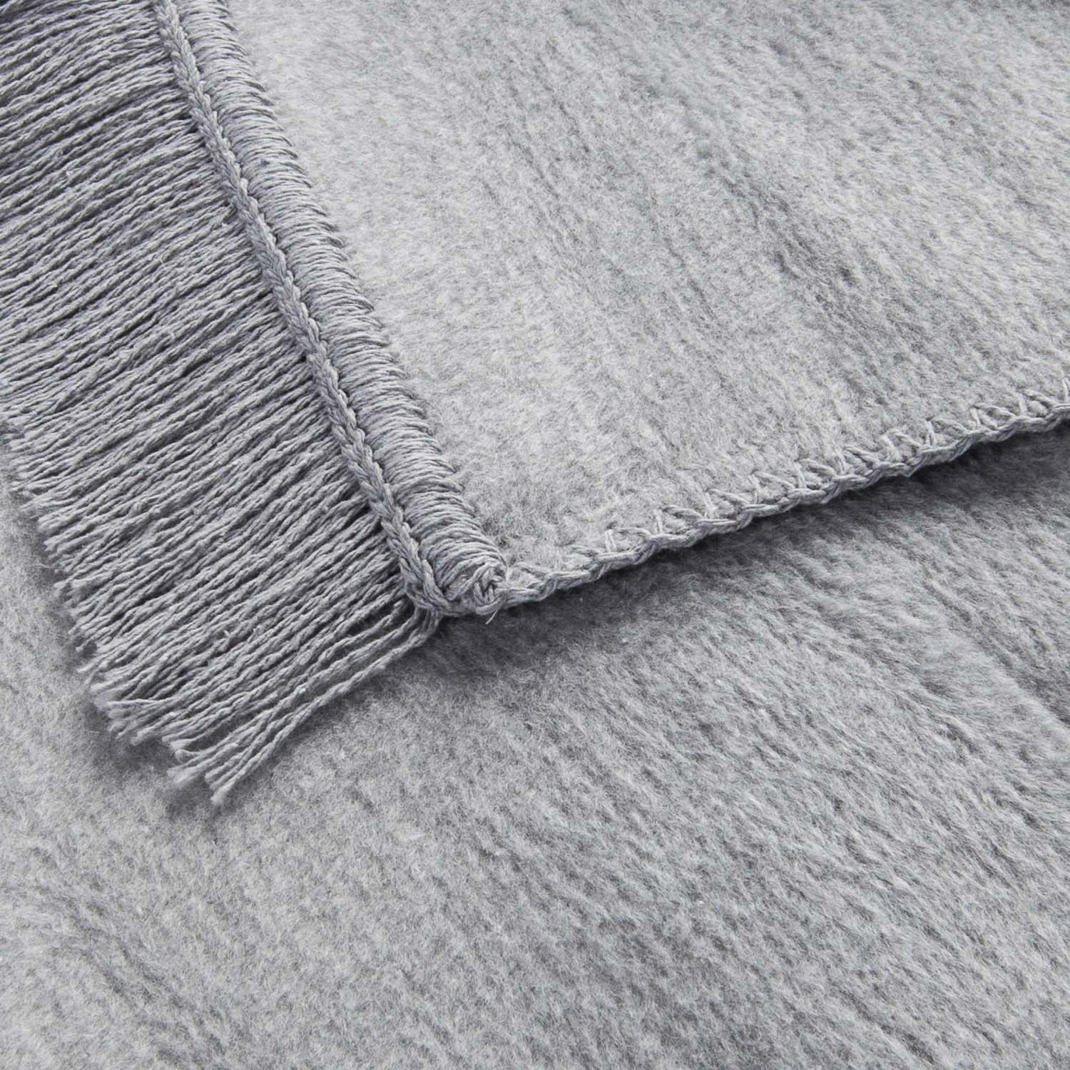 Model wykonano z wysokiej jakości mieszanki 58% bawełny, 32% akrylu i 10% poliestru. Dzięki temu jest niezwykle miękki, trwały i przyjemny w dotyku. Gramatura 450 g/m² zapewnia idealną równowagę pomiędzy ciepłem a lekkością, sprawiając, że koc pięknie układa się na łóżku lub sofie. Drobne frędzle w odcieniu popielu dodają mu eleganckiego wykończenia i delikatnego charakteru.
