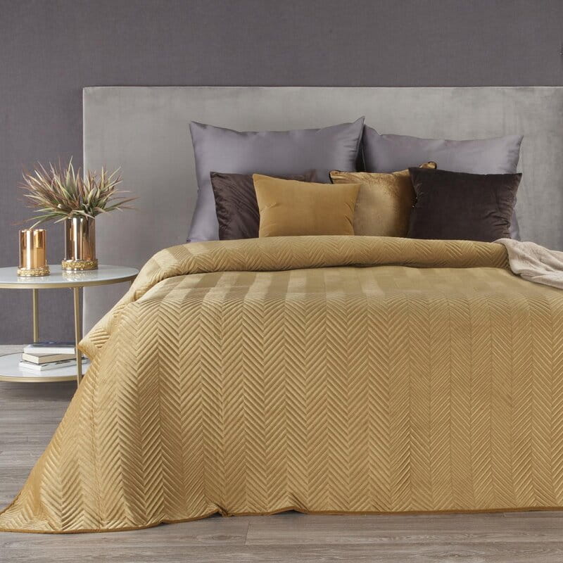 Dlaczego warto wybrać narzutę 230x260 Sofia jodełka welwetowa Miodowa?