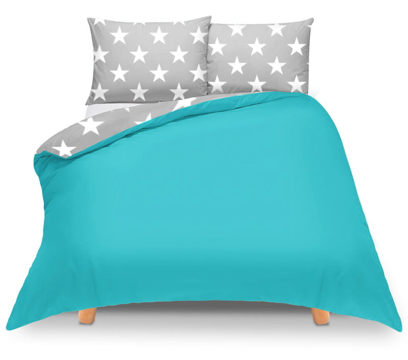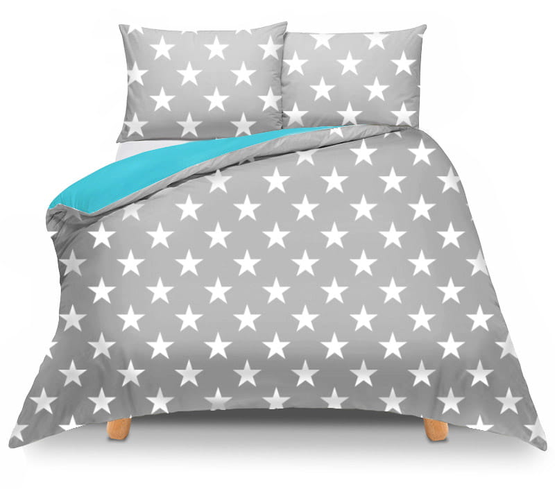 Pościel 150x200 dwustronna Duale szara w gwiazdy + turkusowa z torbą