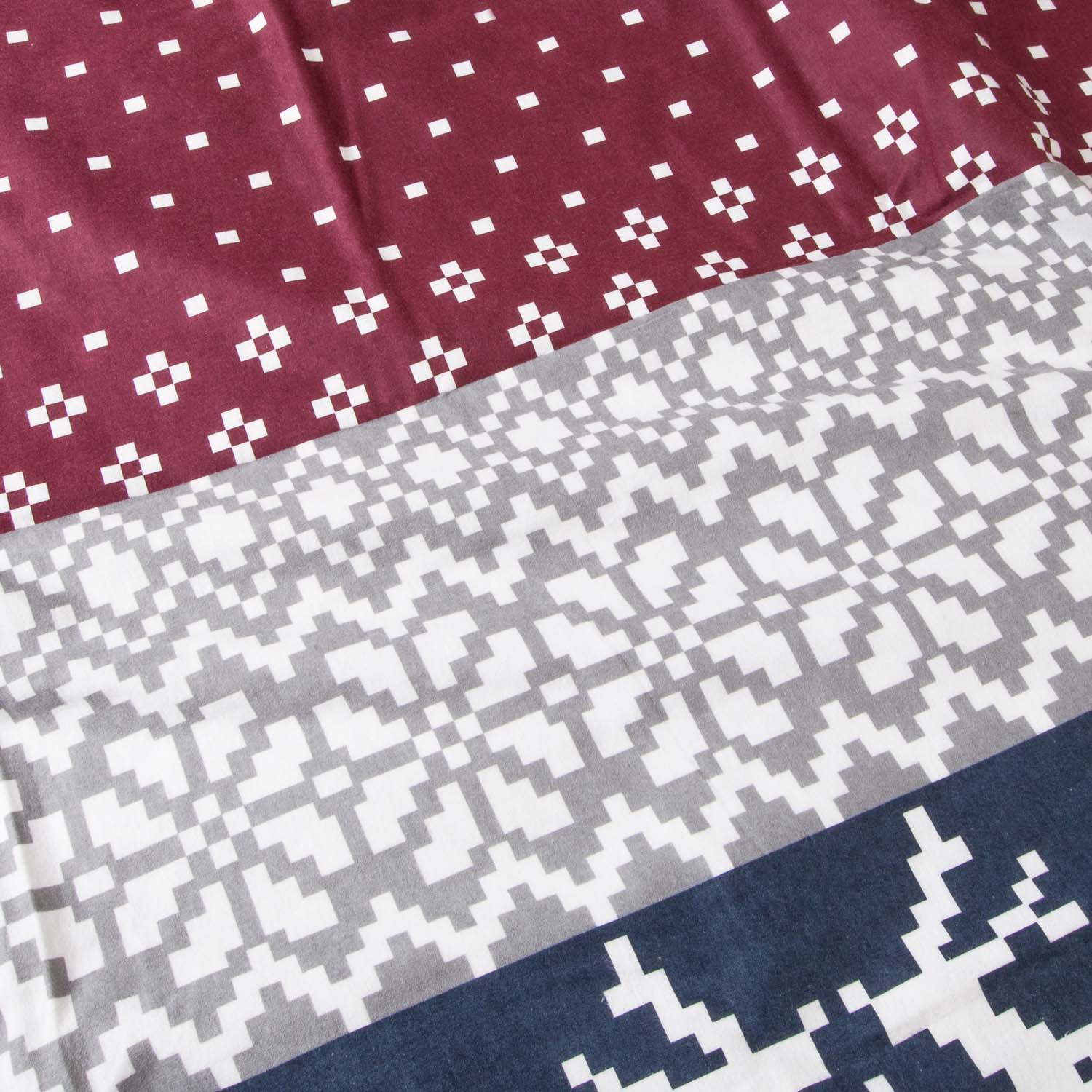 DARYMEX KOMPLET POŚCIELI 140x200 FLANELA BAWEŁNIANA DWUKOLOROWA BORDO–BIEL Z NORDYCKIM PASMEM RENIFERÓW