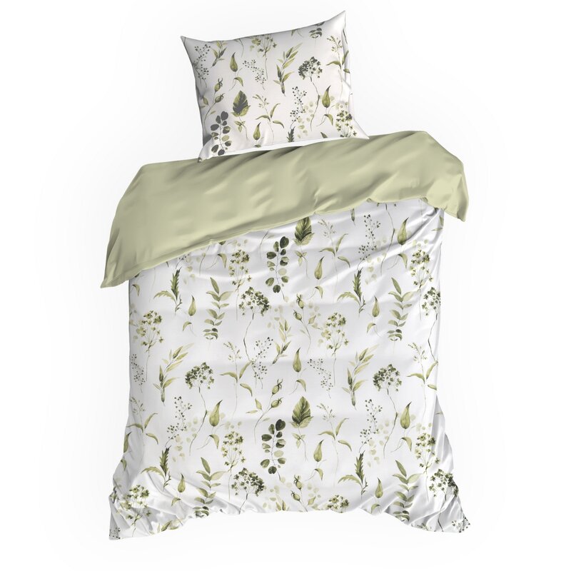 Oliwkowa harmonia w bieli – pościel 140x200 Spring 105 kwiatowa
