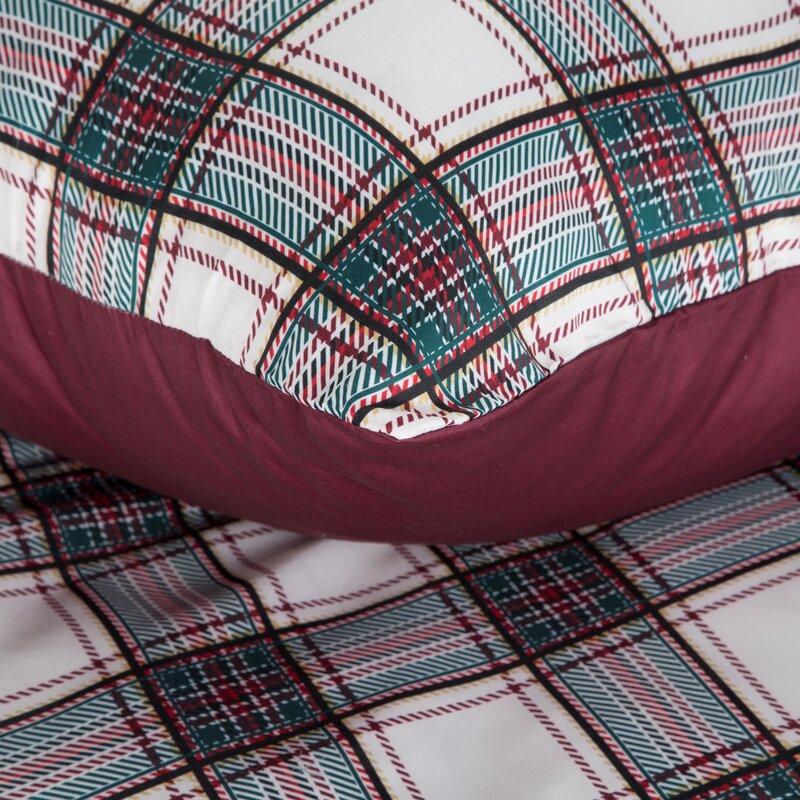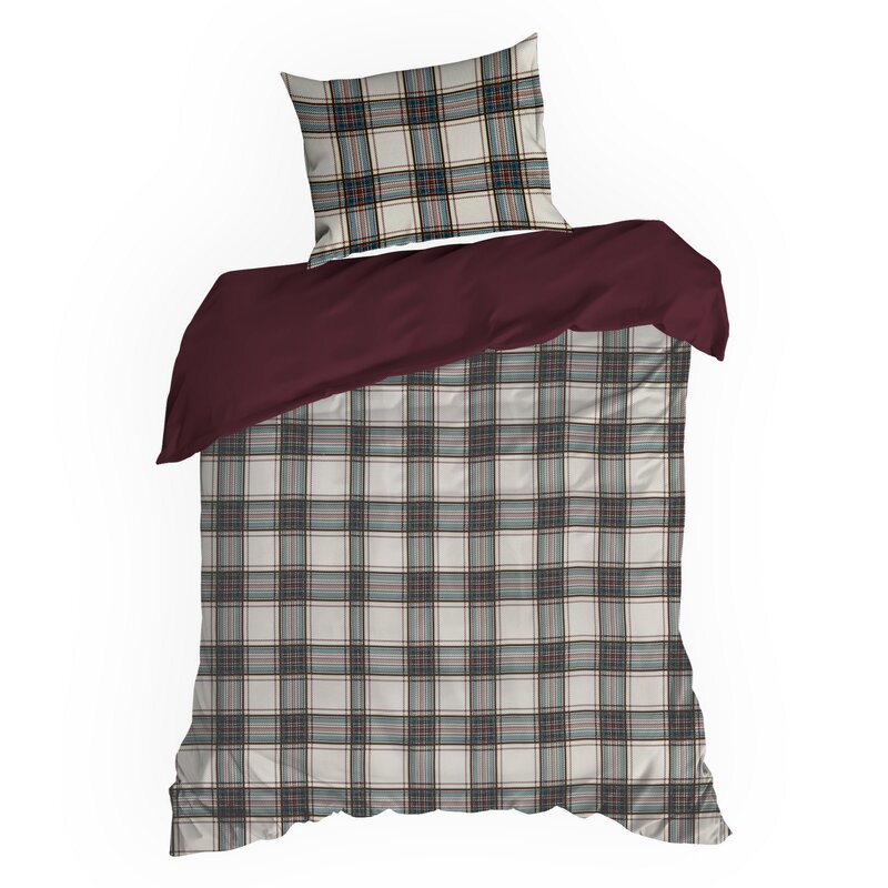 Pościel świąteczna 160x200 Aaron – kremowa w elegancką kratę z bordowym akcentem Eurofirany