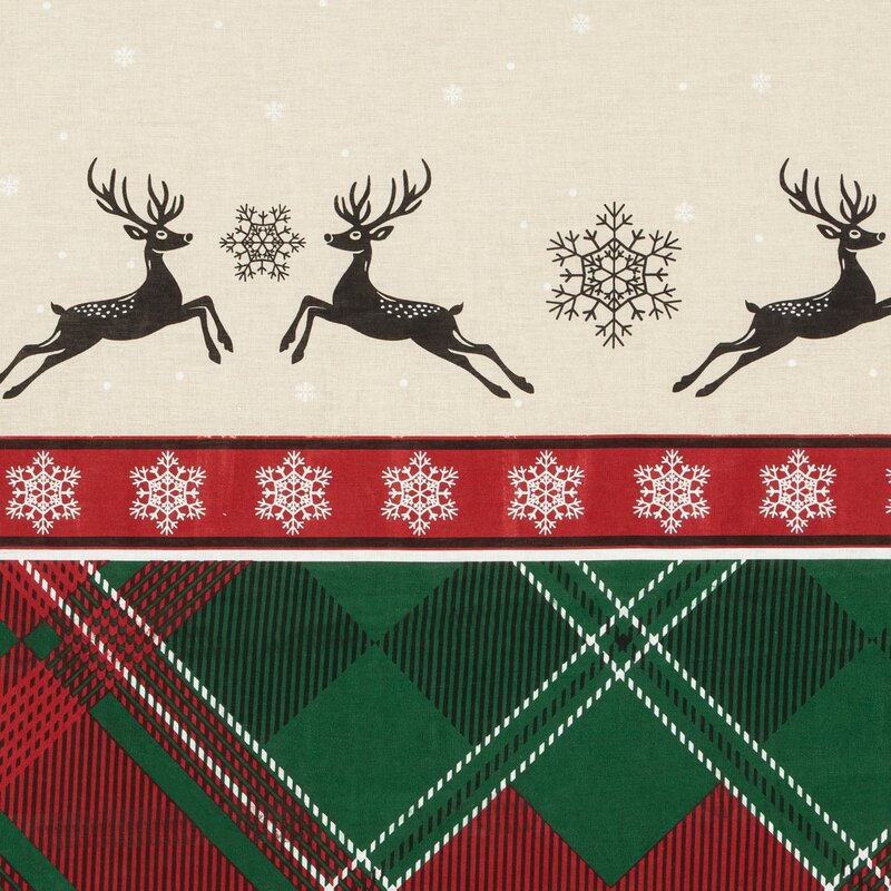 Pościel świąteczna 160x200 Austin – kremowa z reniferami i zielono-czerwoną kratą Eurofirany