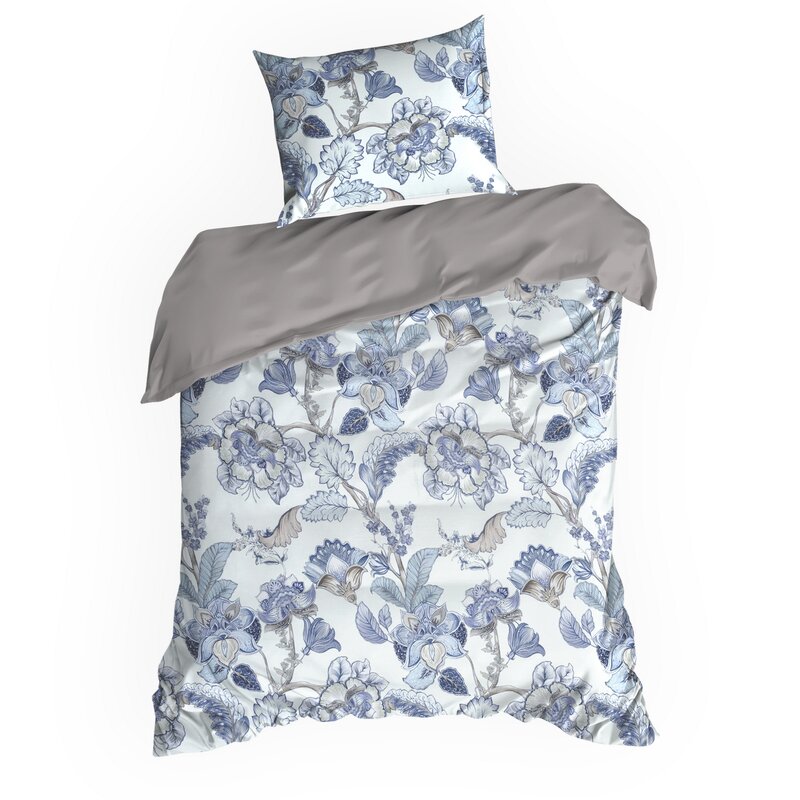 Pościel z makosatyny biała – wzór granatowe kwiaty