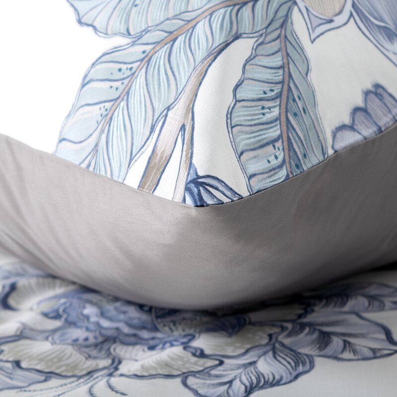 Pościel 160x200 biała granatowe kwiaty Premium 34 wyróżnia się eleganckim, wyrazistym wzorem inspirowanym klasyczną florystyką w nowoczesnym wydaniu. Na jasnym tle pięknie prezentują się duże kwiaty i liście w odcieniach granatu oraz przygaszonego błękitu, które tworzą dekoracyjny, ale bardzo stylowy efekt. Taki motyw sprawia, że łóżko od razu staje się mocnym elementem aranżacji, a cała sypialnia zyskuje bardziej dopracowany i szlachetny charakter.
