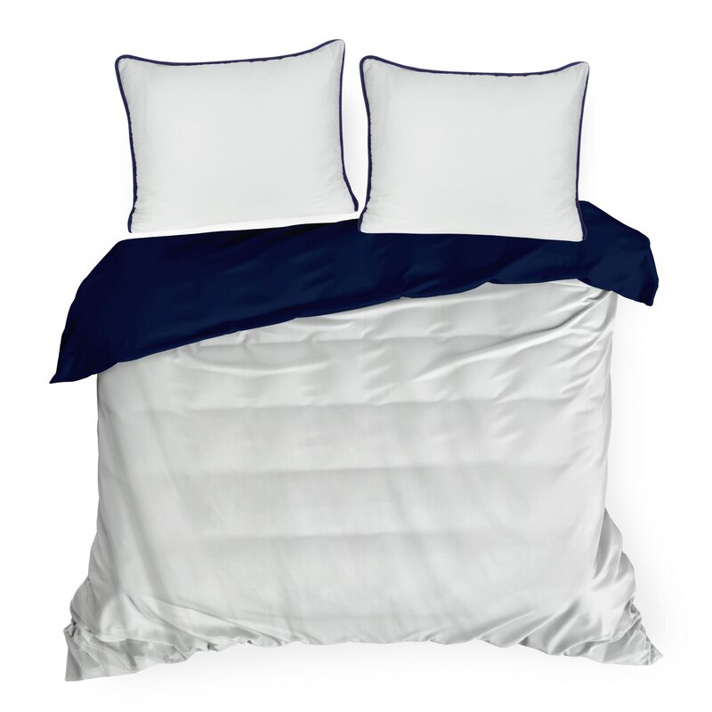 Pościel 160x200 Lunara dwustronna biało-granatowa makosatyna ze sznurem Eurofirany