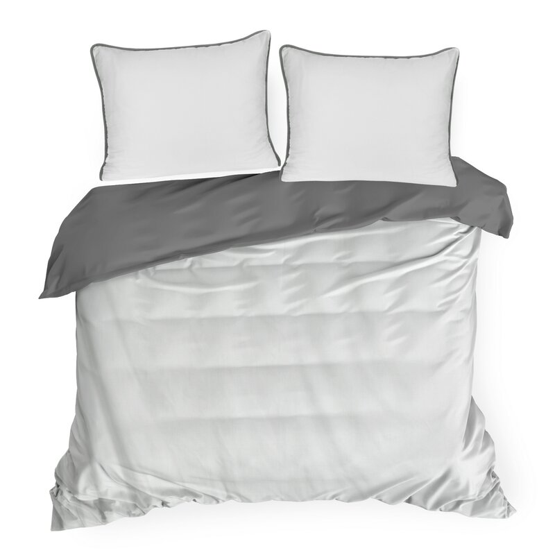 Pościel 160x200 Lunara dwustronna biało-stalowa makosatyna ze sznurem Eurofirany