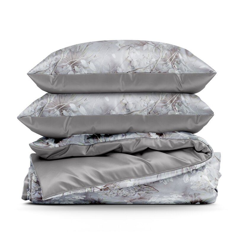 Pościel z makosatyny jasnopopielata – wzór srebrzyste kwiaty