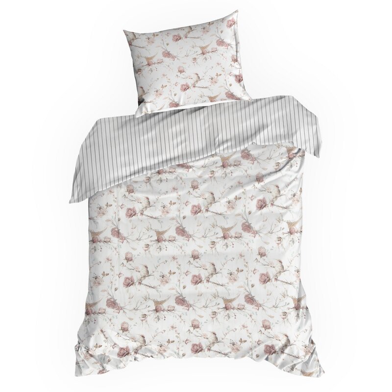 Pościel 160x200 Raya 2 biała w ogród botaniczny i stalowe paski satynowa Eurofirany