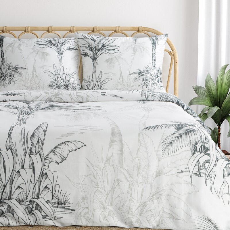Pościel 160x200 Spring 104 biała w ozdobne trawy grafitowe satyna Eurofirany