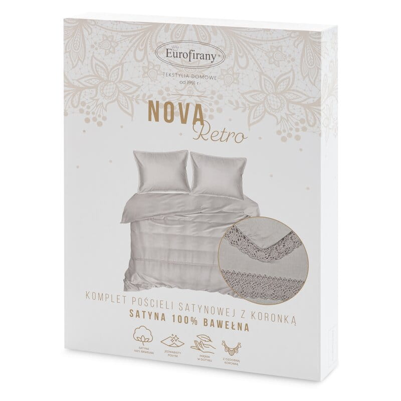 Pościel 160x200 z koronką srebrna satynowa Retro 5 Eurofirany