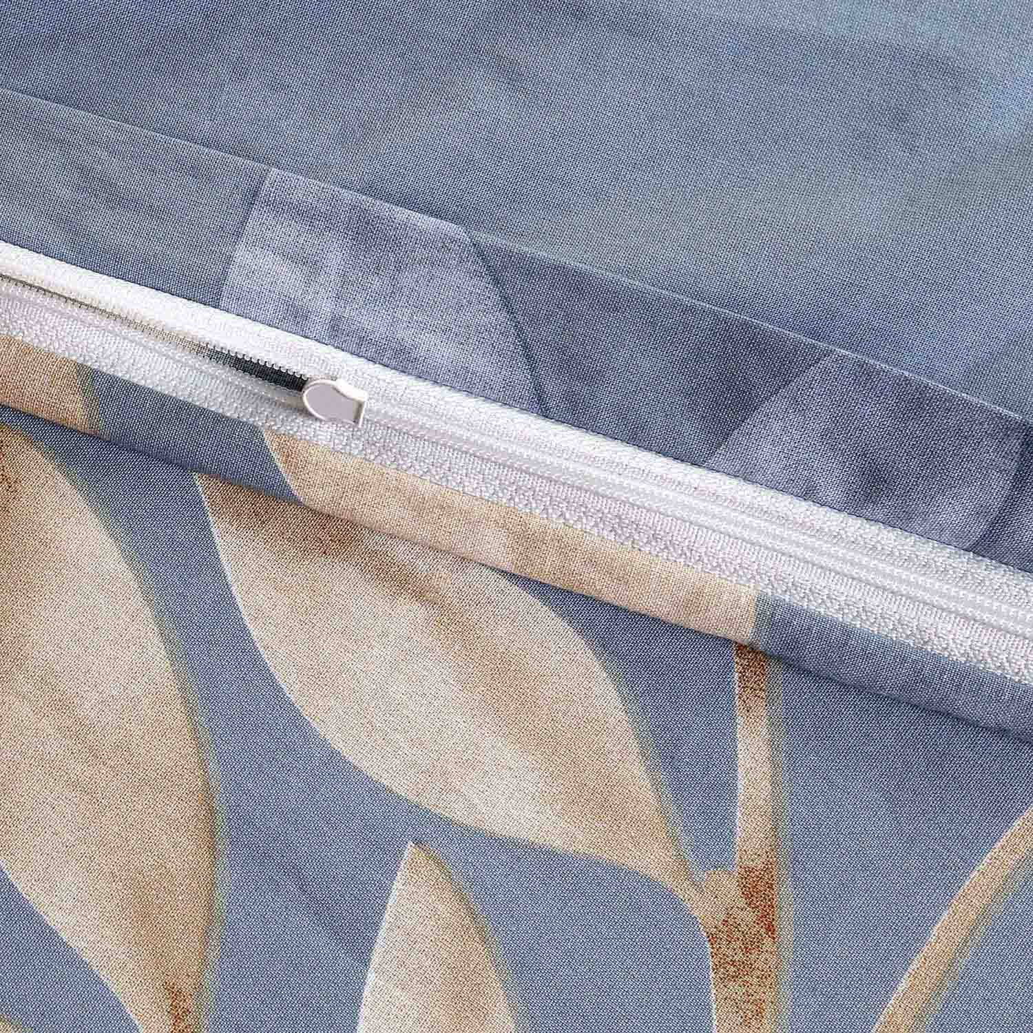 Poszwa i poszewka posiadają zamek błyskawiczny, ukryty pod plisą materiału, co ułatwia zakładanie i zdejmowanie pościeli oraz zapewnia estetyczne wykończenie. Neutralne barwy i subtelny motyw liści sprawiają, że pościel łatwo komponuje się z różnymi aranżacjami sypialni – zarówno nowoczesnymi, jak i klasycznymi.