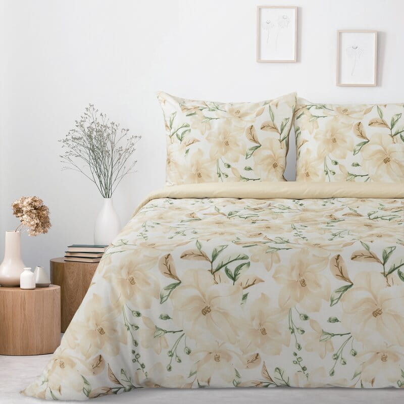 Lekka, naturalna tkanina zapewnia komfort snu, a ponadto jest łatwa w prasowaniu. Przyjemna w dotyku bawełna chłodzi w gorące noce, a w zimie przyjemnie otula i zapewnia ciepło. Bawełnadobrze wchłania i odprowadza wilgoć, co ma szczególne znaczenie zwłaszcza latem.  Zarówno poszewki jak i poszwa na kołdrę posiadają praktyczne zamki plastikowe, dzięki czemu zmiana pościeli zajmuje tylko krótką chwilę.