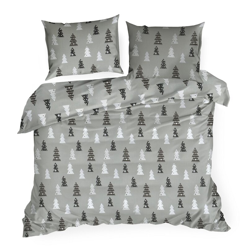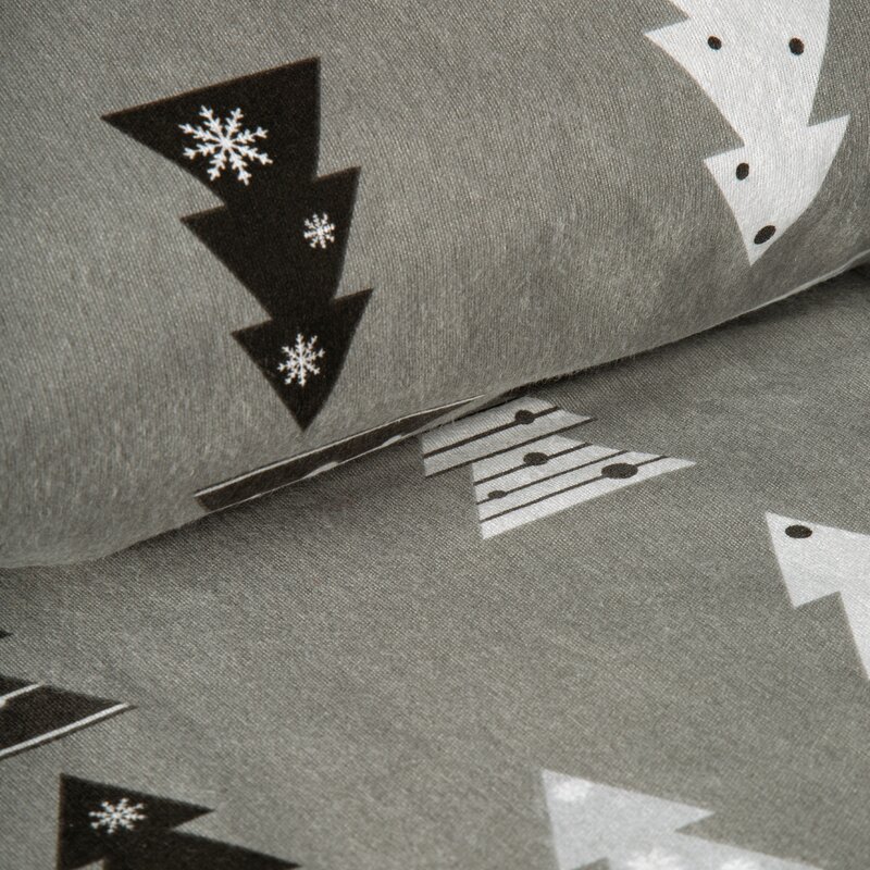 Pościel świąteczna 220x200 Lenon – szara flanelowa z choinkami Eurofirany