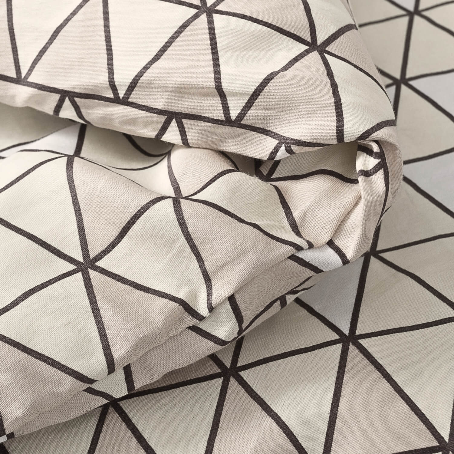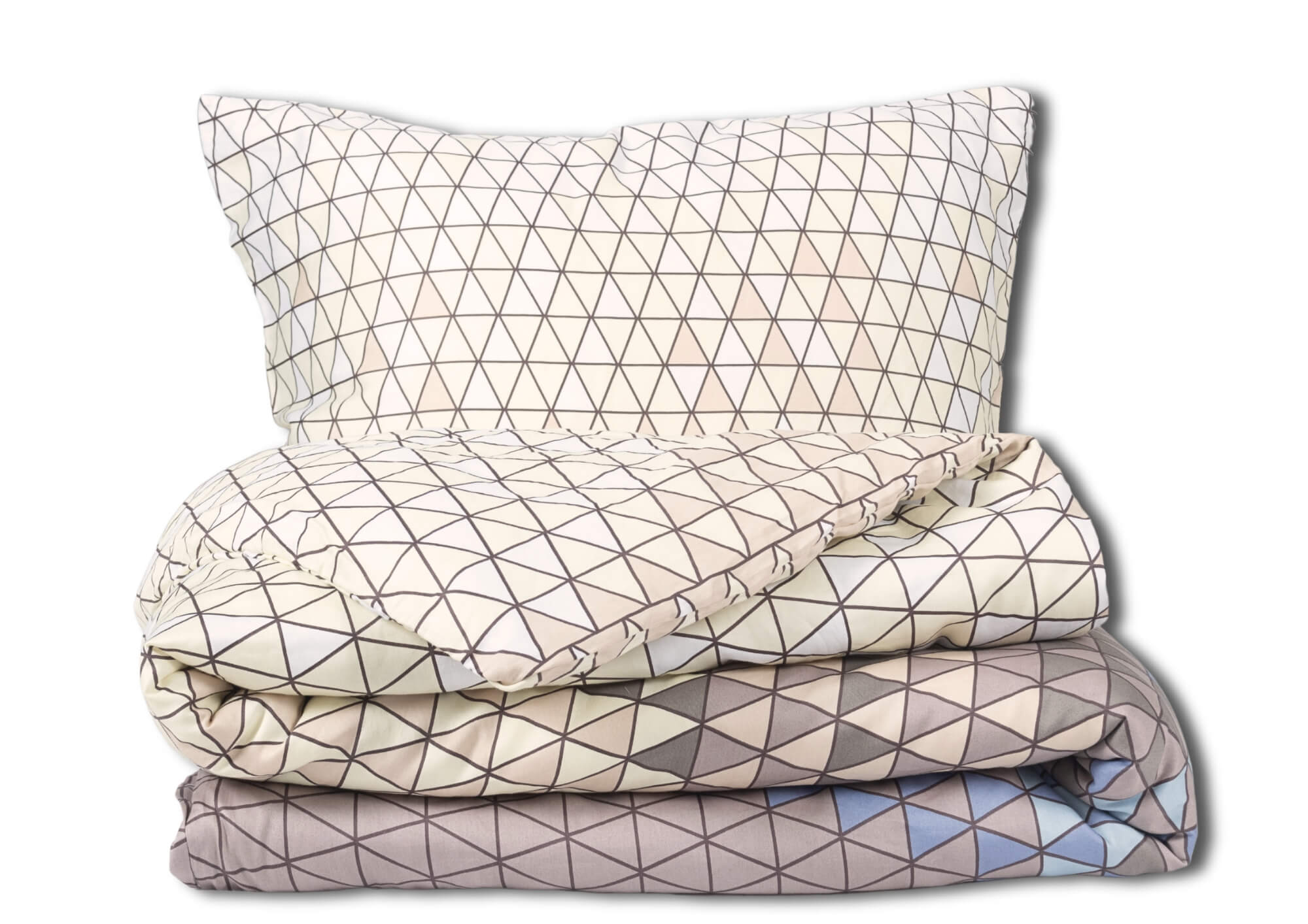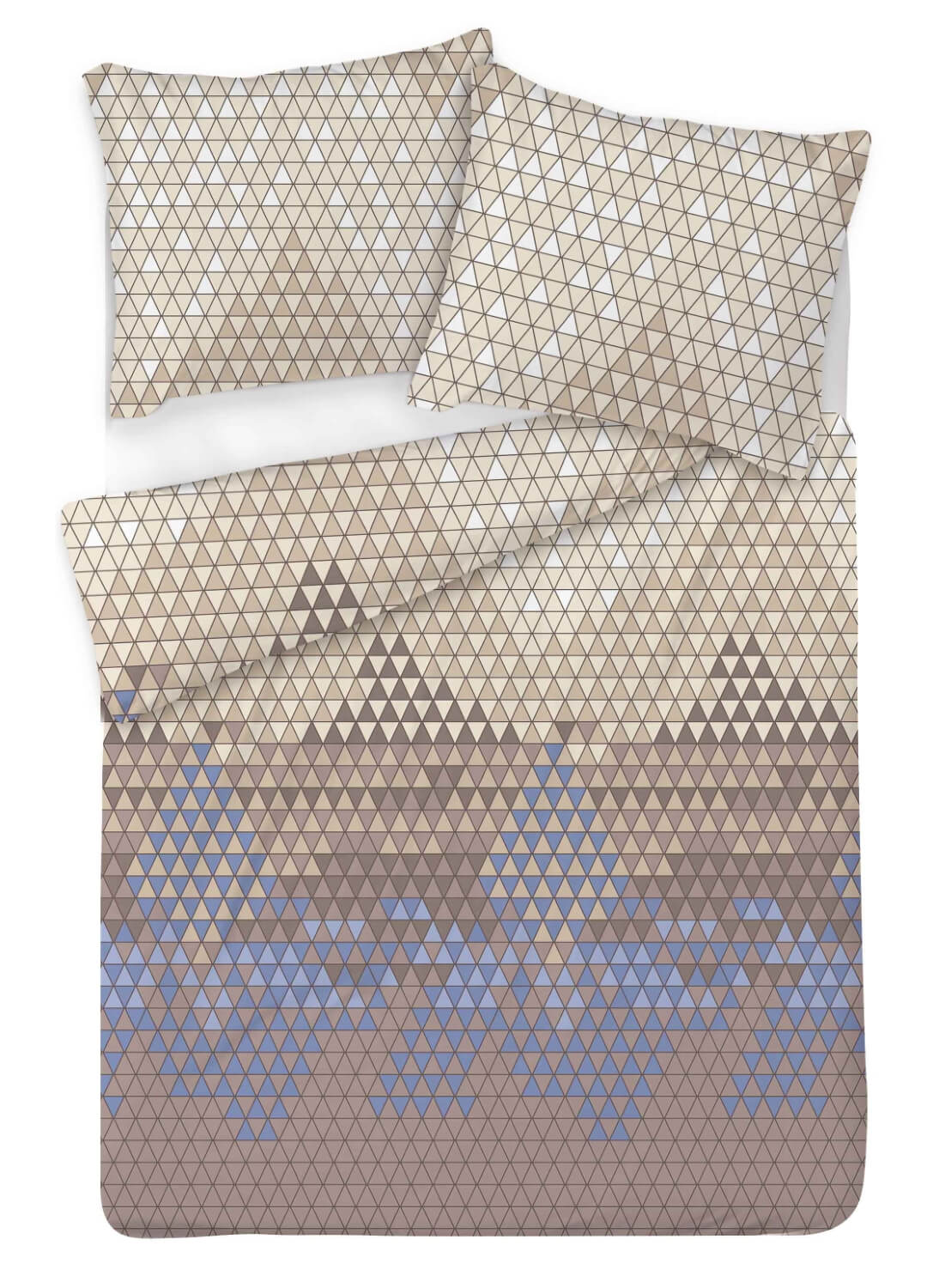 Pościel z satyny bawełnianej Mozaika Beżowa to idealne połączenie nowoczesnego designu i ciepłej elegancji, które ożywi każdą sypialnię. Wzór pościeli zachwyca geometryczną mozaiką trójkątów, które płynnie przechodzą od subtelnych odcieni beżu i brązu do głębokiego niebieskiego, tworząc efekt gradientu przypominający abstrakcyjny krajobraz. Ta minimalistyczna, ale wyrafinowana kompozycja wprowadza do wnętrza spokój i harmonię, a jej uniwersalny styl pasuje zarówno do nowoczesnych, jak i bardziej klasycznych aranżacji. Beżowa tonacja dodaje ciepła, czyniąc pościel idealnym wyborem dla tych, którzy cenią subtelność i ponadczasowy design.