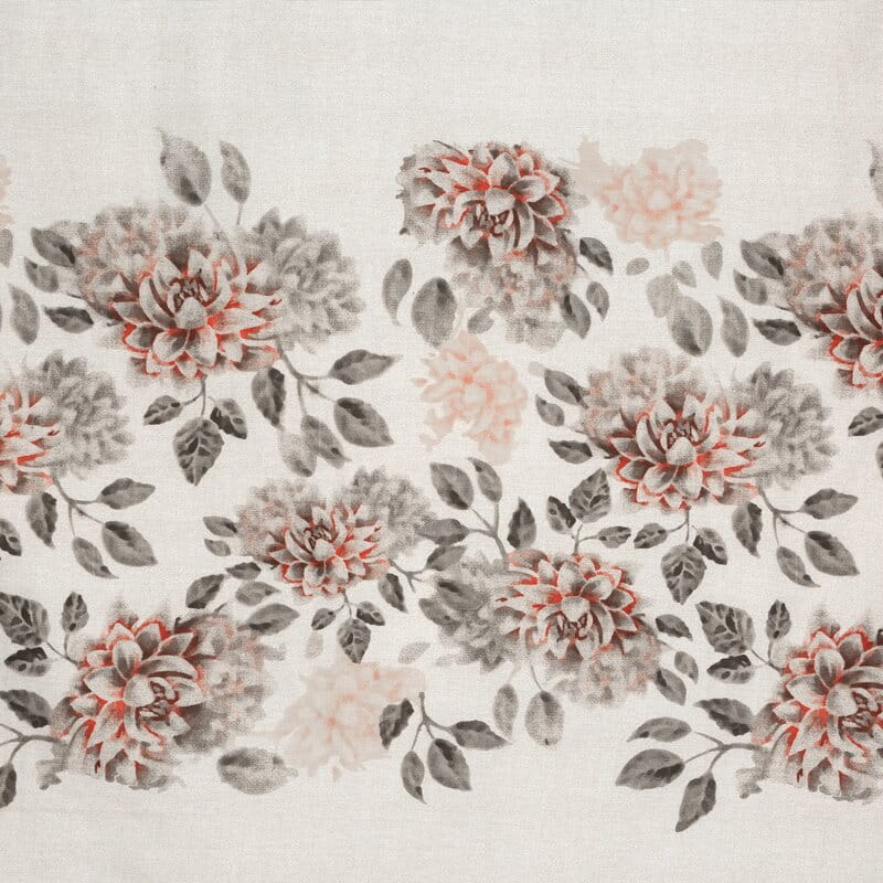 Proces sanforyzacji, któremu poddana jest tkanina sprawia, że tkanina nie kurczy się i jest trwała. Żywy, kontrastujący z jasnym tłem wzór znakomicie odświeża wnętrze sypialni. Nowoczesna technika barwienia digital print pozwala na uzyskanie niezwykle trwałych barw oraz sprawia, że intensywne i nasycone kolory nie blakną, nawet po wielu praniach.