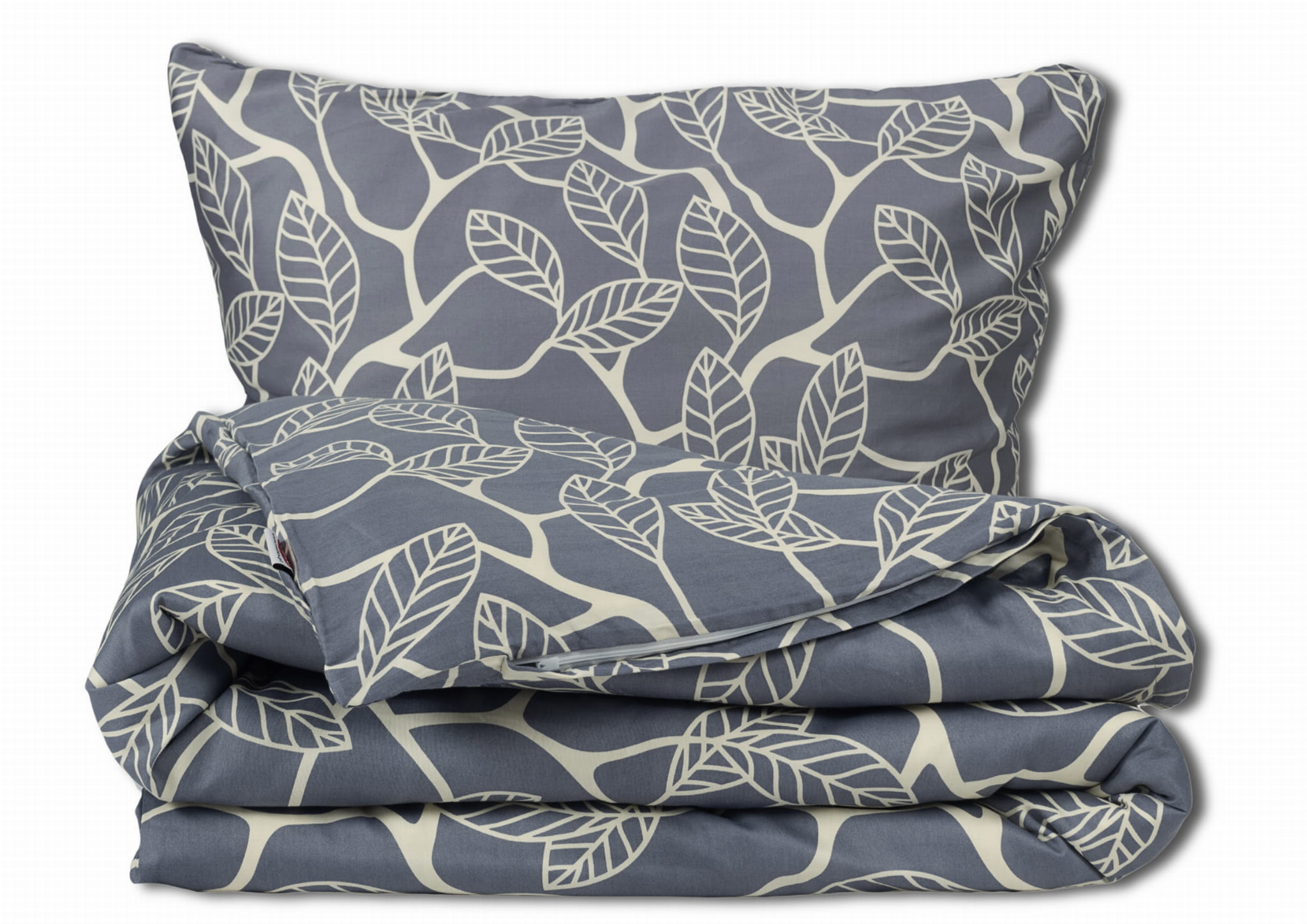 Pościel satynowa 220x200 "Wieczorne Gałązki" to propozycja dla osób ceniących wyrafinowaną prostotę i ponadczasowy styl. Wzór przedstawia jasne kontury liści i gałązek na tle koloru ciemnoszarego, który przywodzi na myśl spokojny, letni wieczór. Kontrastowe, ale harmonijne połączenie barw sprawia, że pościel wprowadza do wnętrza elegancję, spokój i subtelny botaniczny akcent. Ten deseń będzie idealnym wyborem zarówno do nowoczesnych, jak i klasycznych sypialni, dodając im stylu i przytulności.