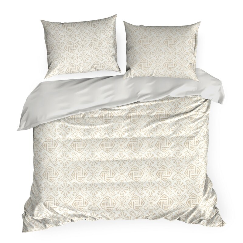 Królewski wymiar ornamentyki – duża pościel 220x200 beżowa mozaika Spring 100