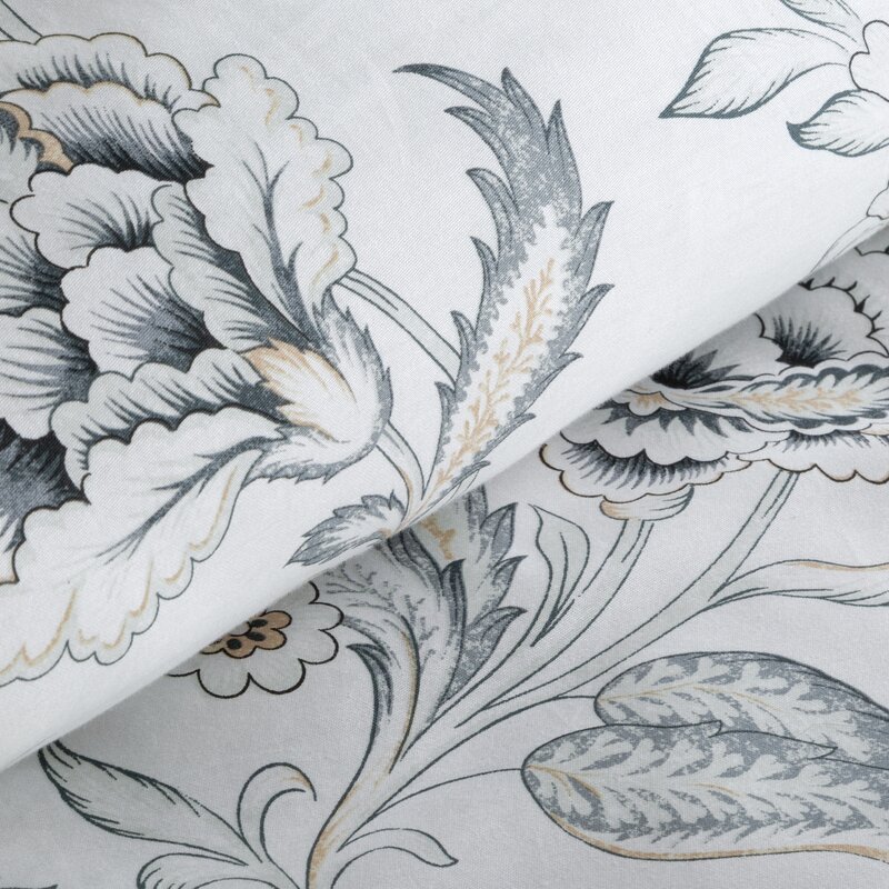 Pościel 220x200 Spring 83 biało-jasnoszara w kwiaty satynowa Eurofirany