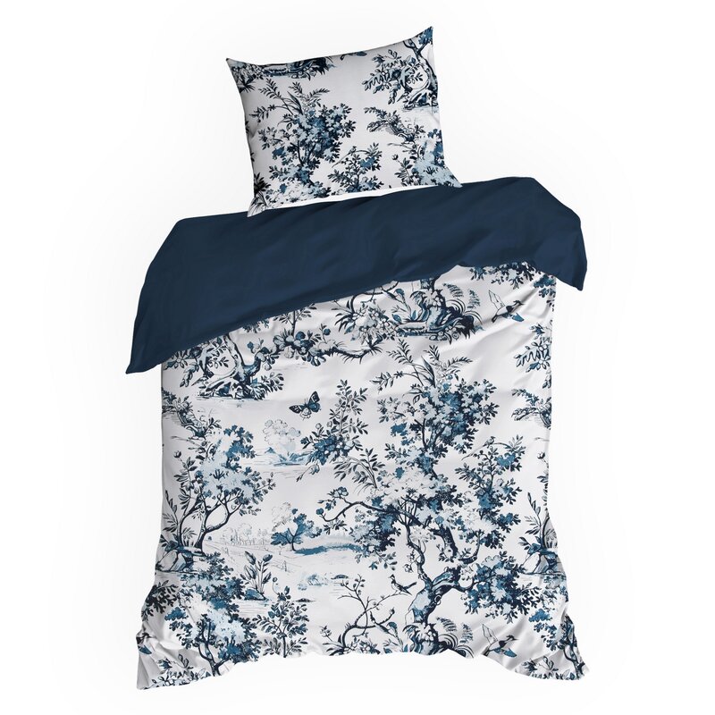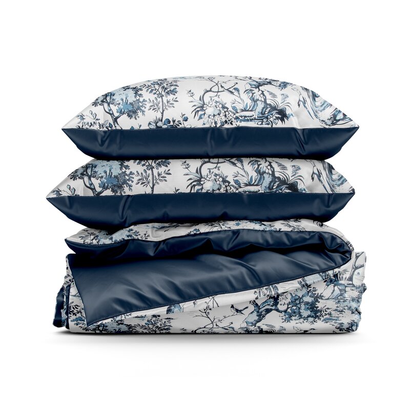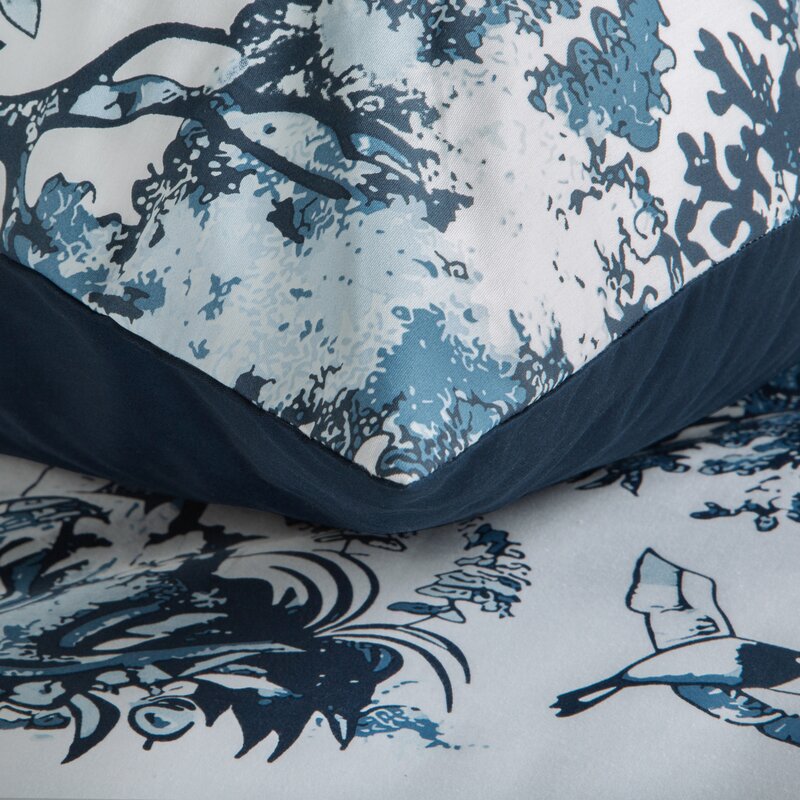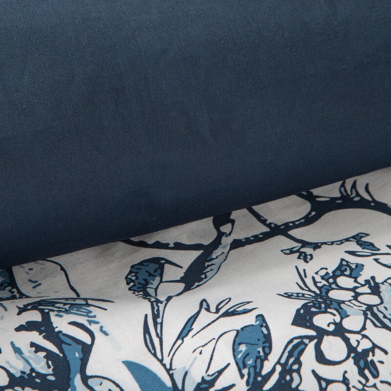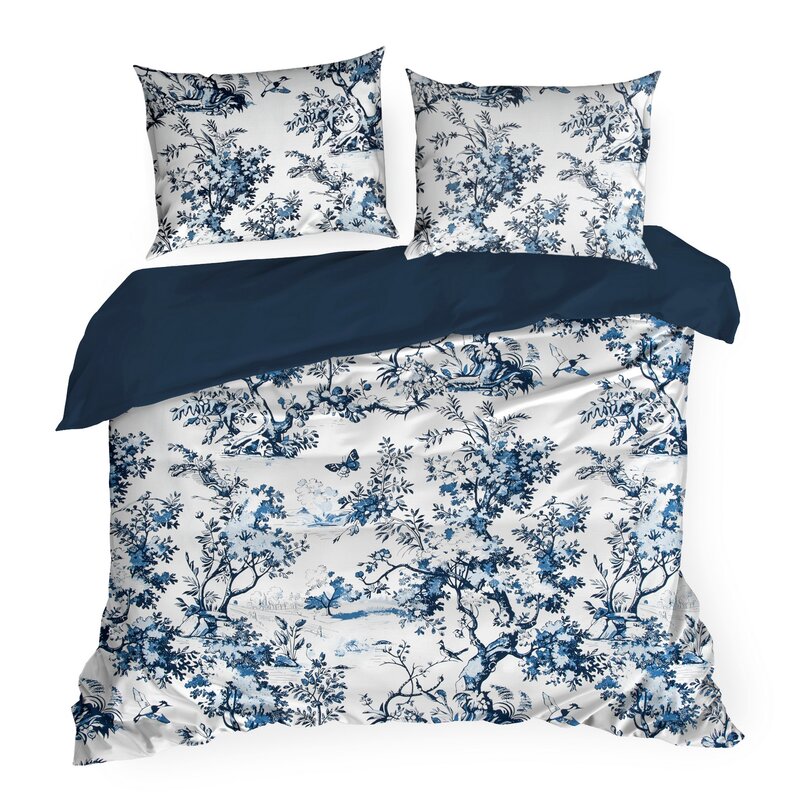 Królewski wymiar bieli i granatu – duża pościel 220x200 Spring 86 roślinna