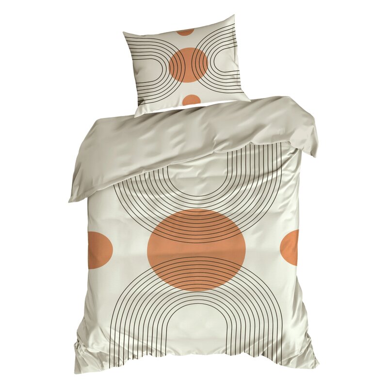 Pościel 220x200 Spring 87 kremowa z nowoczesnym wzorem geometrycznym satyna
