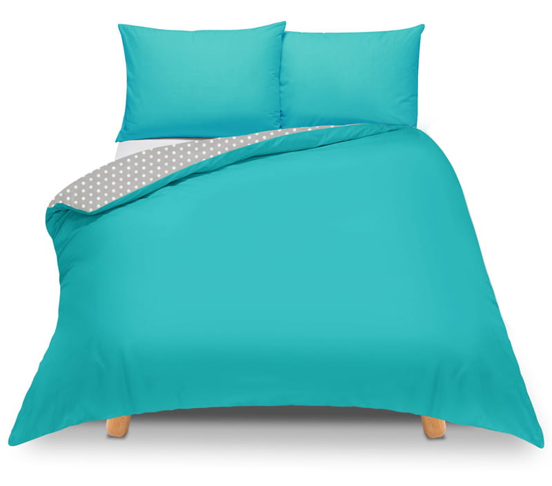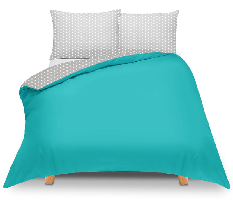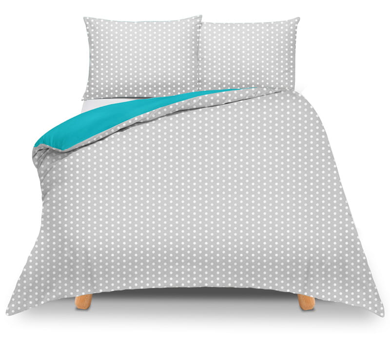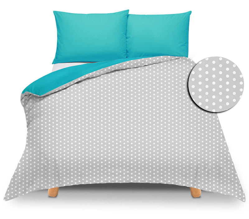 Pościel 150x200 dwustronna Duale szara w kropki-turkusowa z torbą