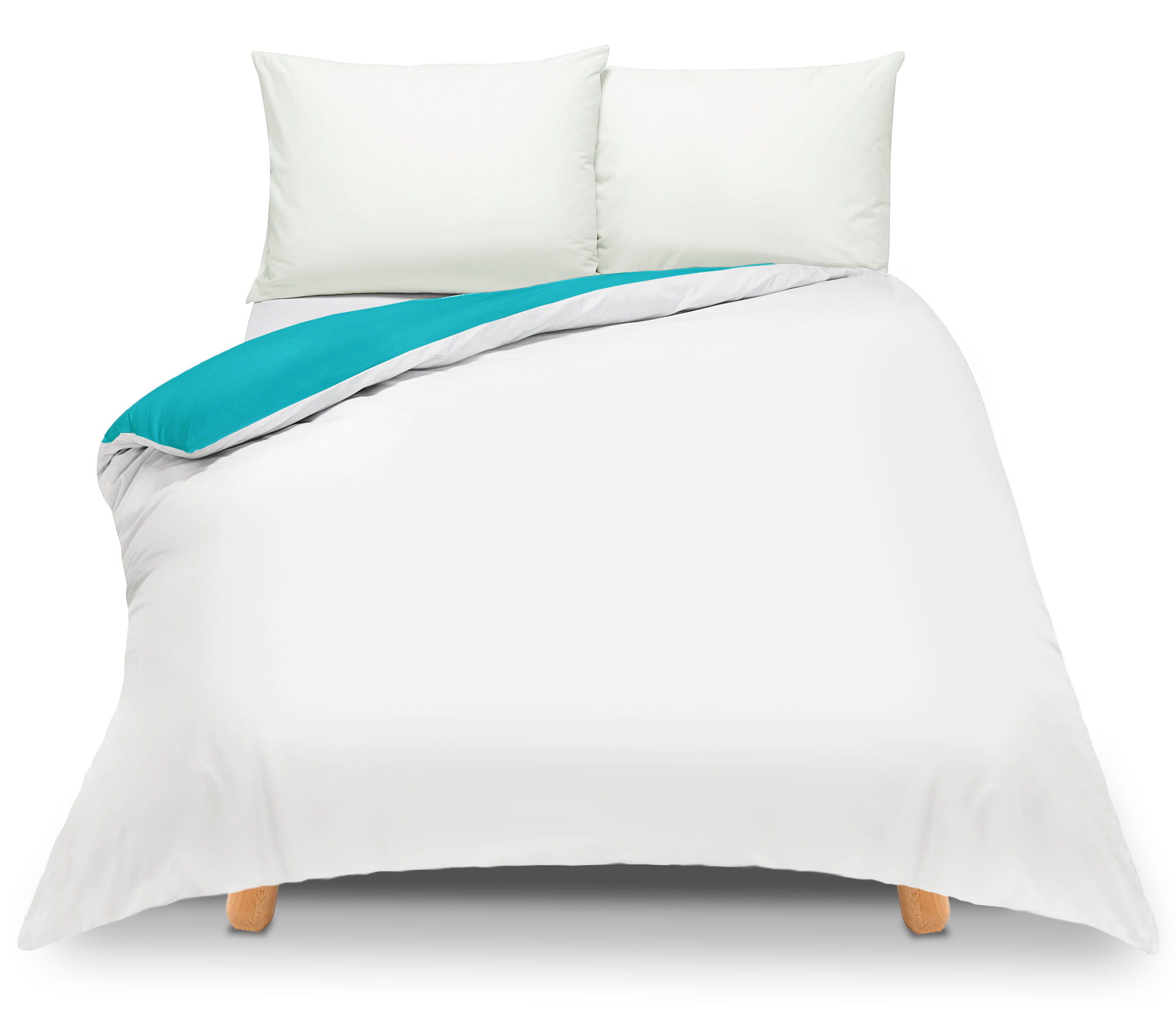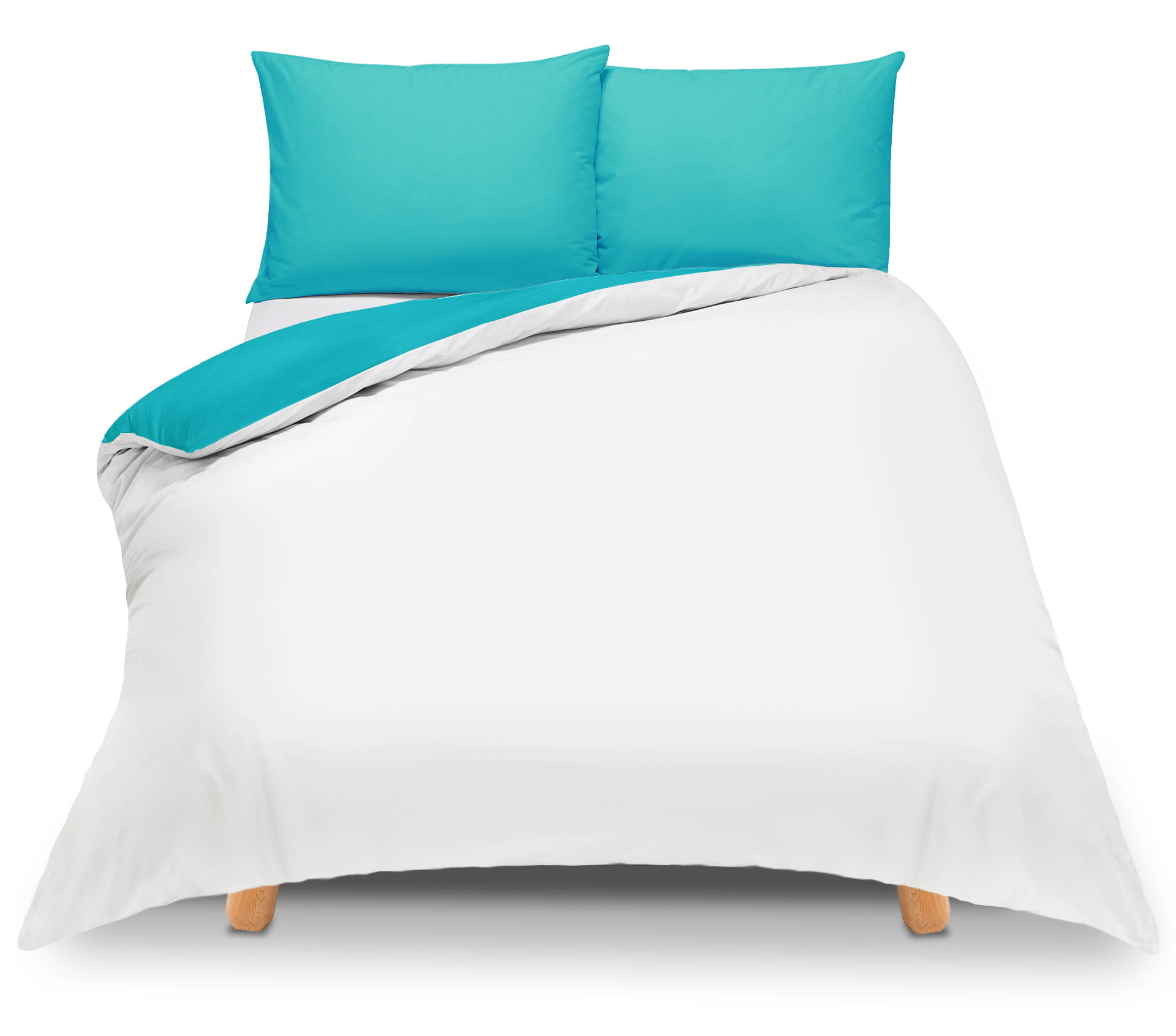 Pościel 150x200 dwustronna Duale turkusowo-biała z torbą