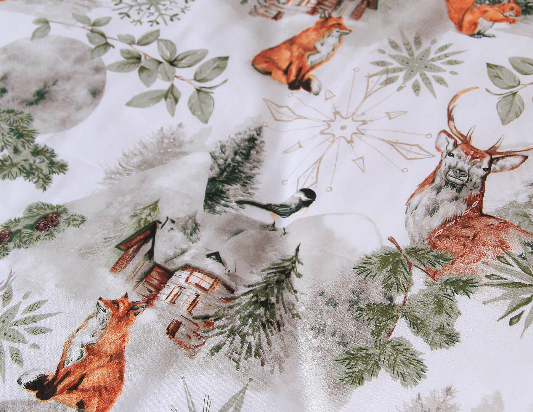 Pościel dziecięca Na zimowym szlaku w rozmiarze 100x 135 cm to wyjątkowy świąteczno-zimowy wzór i świetna jakość w jednym. To wzór przenoszący nas do pięknie zaśnieżonych szlaków i leśnych ścieżek, gdzie wśród drzew możemy spotkać lisy, wiewiórki, sarny czy jelenie. Użyte w nim kolory doskonale ze sobą współgrają i świetnie komponują się z niemal każdym wnętrzem tworząc w nim magiczny klimat. Idealnie sprawdzi się w pokoju dziecięcym jak i sypialni rodziców.