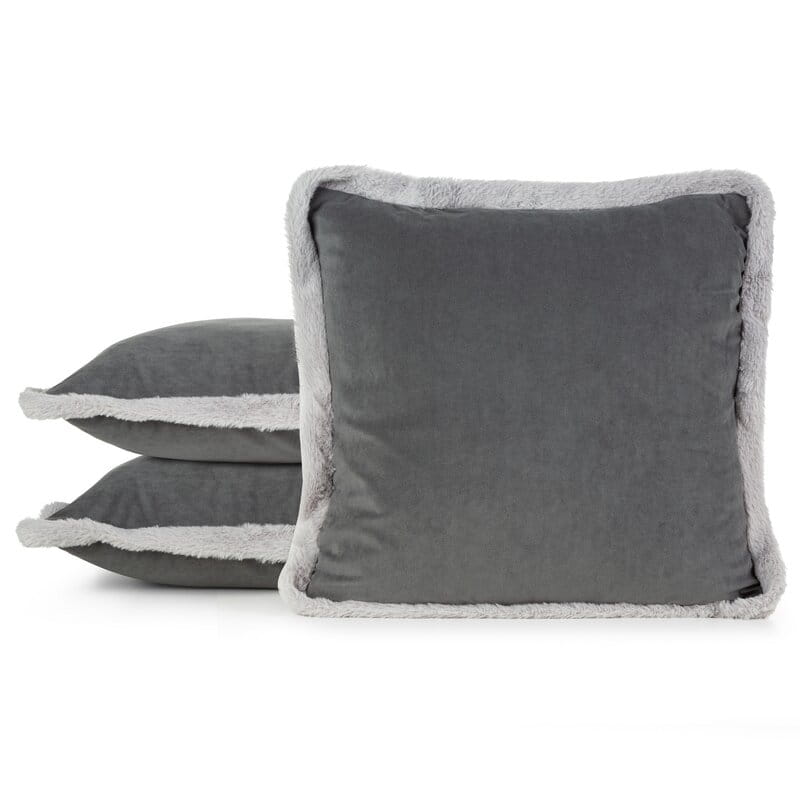 Świąteczna 45x45 poszewka stalowa z futrzaną lamówką Stalowa Eurofirany