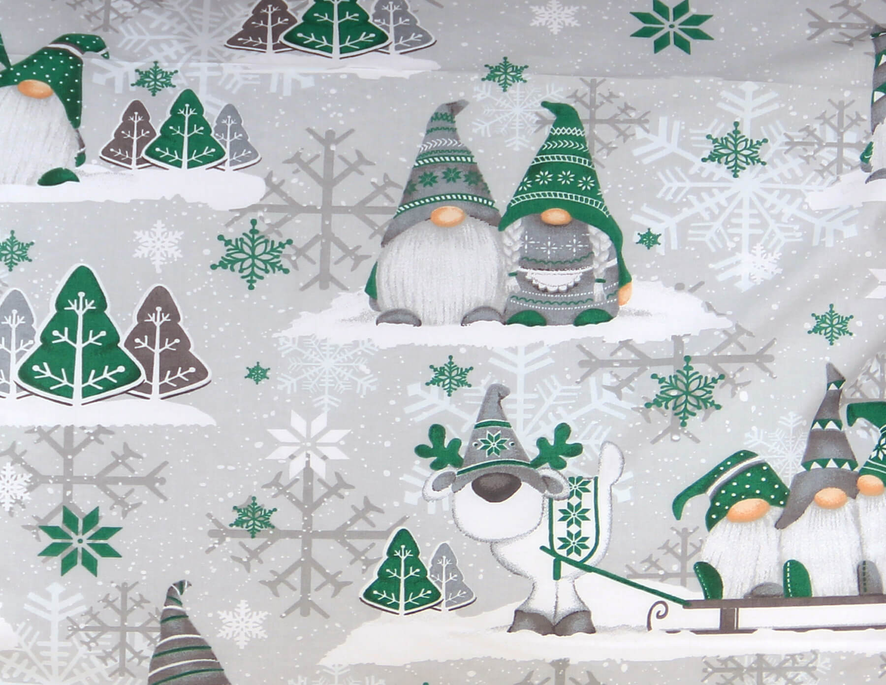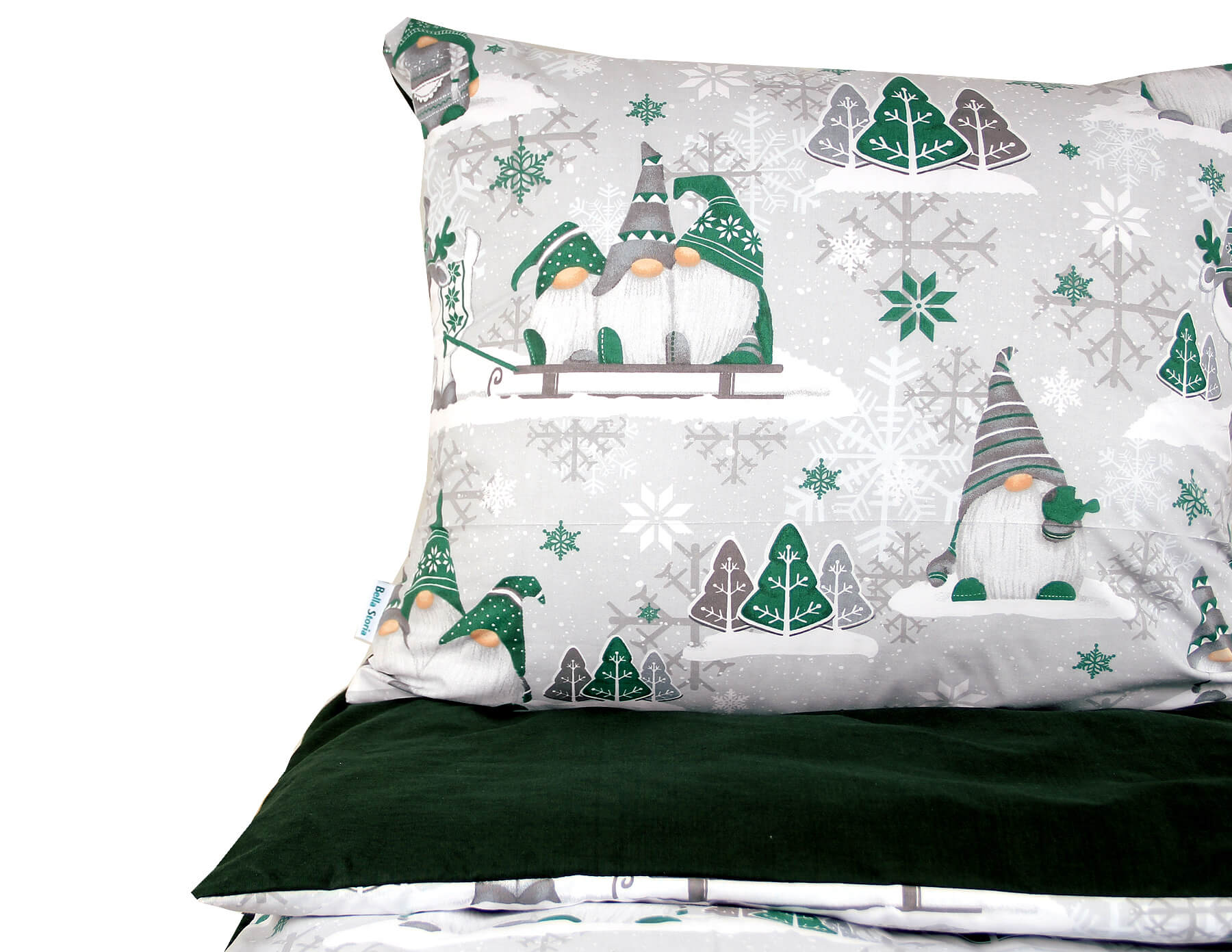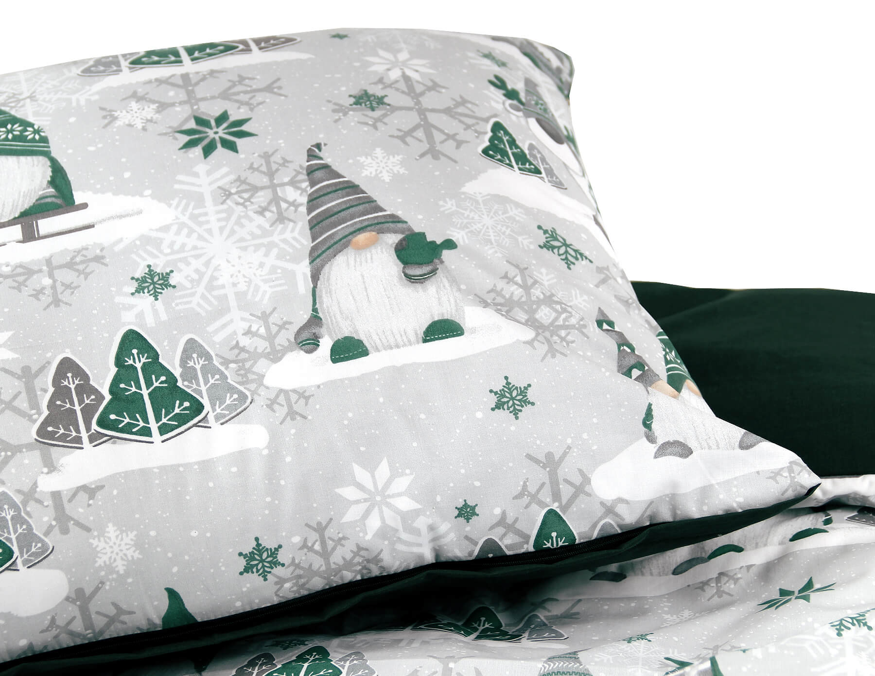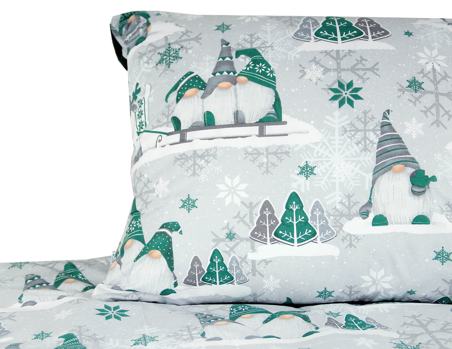 Poszewka 70x80 świąteczna bawełna szara w Zielone Skrzaty