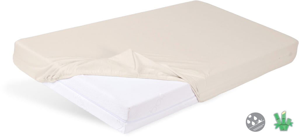 Oddychające, nieprzemakalne prześcieradło bambusowe z podgumowaną warstwą ochronną, zapobiegającą zalanie materaca. Wierzchnia warstwa wykonana jest z miękkiej i naturalnej dzianiny bambusowej (o gramaturze 140g/m2). Taki materiał, dzięki swoim właściwościom, jest antyalergiczny, antygrzybiczny oraz antybakteryjny. Prześcieradło bambusowe nie przyciąga ani kurzu, ani roztoczy.