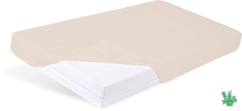 Prześcieradło Bamboo bambusowe z gumką w kolorze jasnobeżowym na łóżko o powierzchni spania 90x200 cm. Produkt został wykonany z najwyższej jakości dzianiny o wysokiej gramaturze 140g/m2, co gwarantuje wyjątkowo długi czas użytkowania. Tkanina bambusowa jest naturalna. Dzięki swoim właściwościom jest antyalergiczna, antygrzybiczna oraz antybakteryjna. Prześcieradło bambusowe nie przyciąga ani kurzu, ani roztoczy.