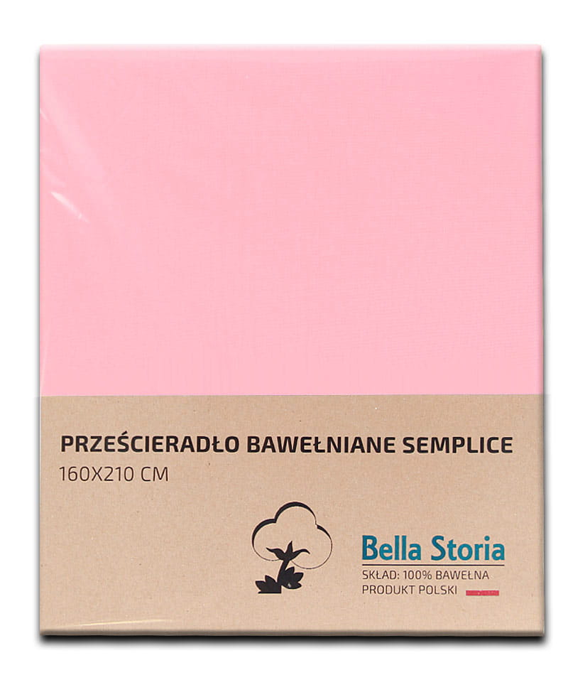 BELLA STORIA PRZEŚCIERADŁO BAWEŁNIANE RÓŻOWE SEMPLICE 160X240 - BEZ GUMKI